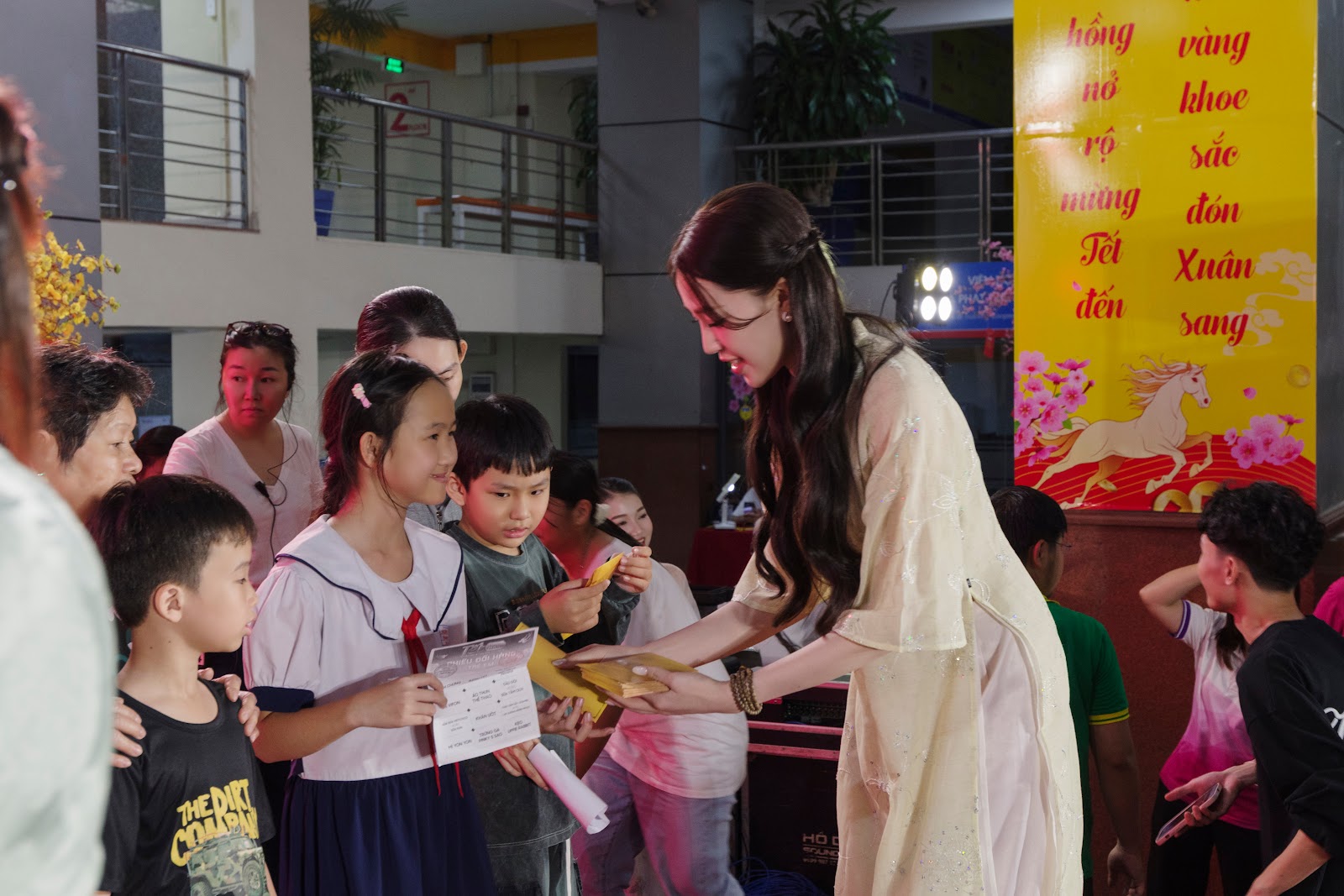 Bên cạnh đó, Á hậu Thu Trà tặng 200 bao lì xì trị giá 100 triệu đồng, Hoa hậu Đỗ Mỹ Linh tặng 40 bao lì xì trị giá 20 triệu đồng. Hoa hậu Yến Nhi, Kiều Duy, Bảo Ngọc, Lương Thuỳ Linh, Ý Nhi, Nam vương Tuấn Ngọc tài trợ các chuyến xe đoàn viên và những phần quà Tết dành cho bà con.
