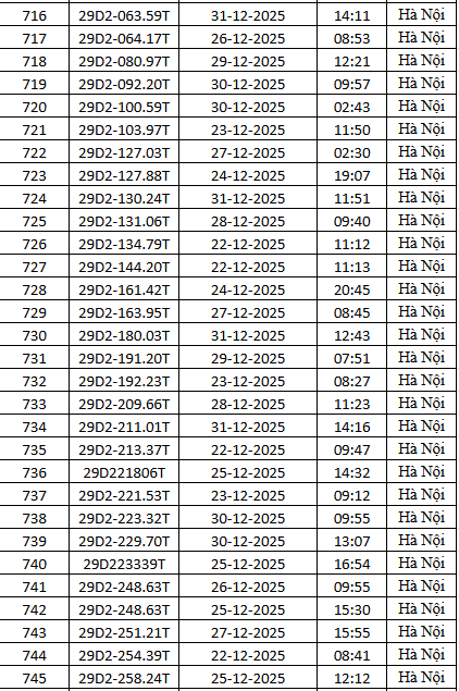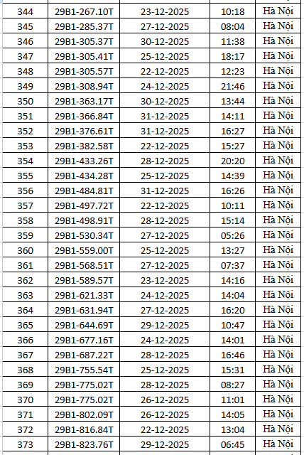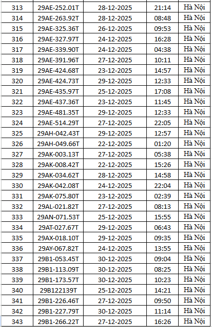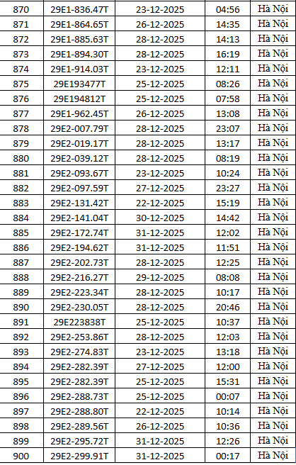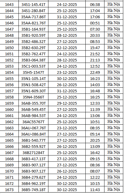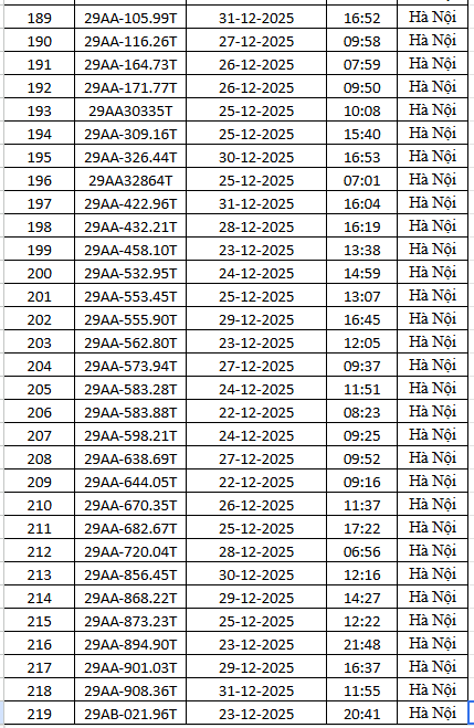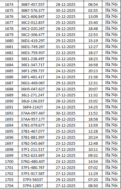 Danh sách xe máy vi phạm được hệ thống camera AI của Công an TP Hà Nội ghi nhận: