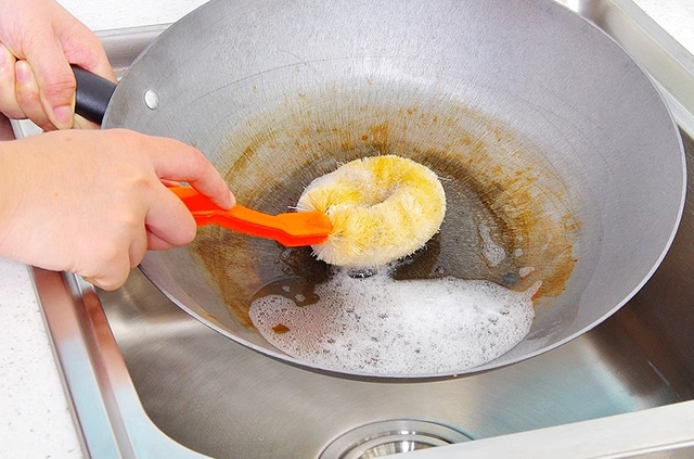 - Cặn thức ăn bị cháy khét do không vệ sinh kỹ nồi chảo, nhất là khi chuyển món: Chuyển món ngay trên cùng nồi chảo mà không rửa sạch khiến dầu mỡ thừa bị đốt cháy nhiều lần, tạo ra acrolein và PAHs các chất gây đột biến tế bào và ung thư phổi. Cặn thức ăn cháy khét khi bị đốt lại sẽ phát tán khói độc hại, dễ dàng xâm nhập vào phổi khi hít phải. Đặc biệt, nồi chảo chống dính cũ, bong tróc còn thải ra hóa chất độc khi bị đun nóng nhiều lần.