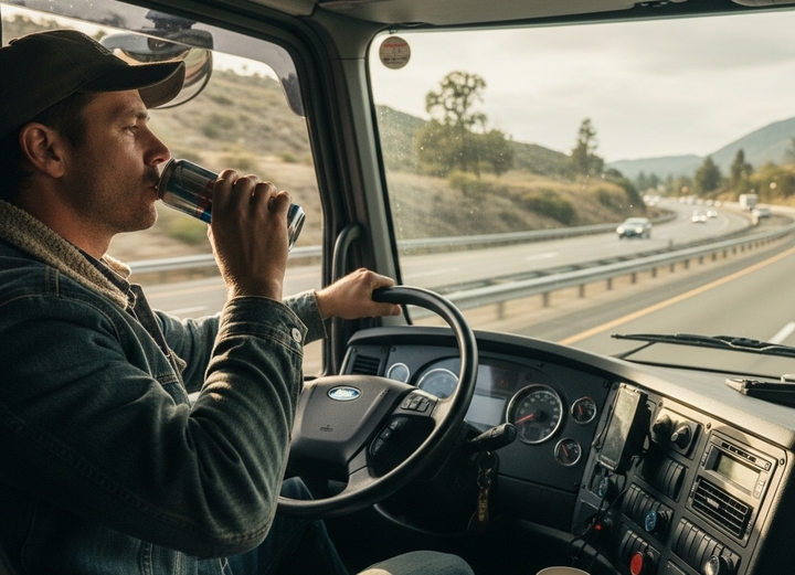 Để tỉnh táo lái xe, nam thanh niên thường xuyên sử dụng nước tăng lực. (Ảnh minh hoạ)