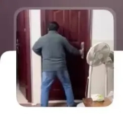 Ngoài cửa, người cha như phát điên, liên tục đạp cửa, lắc mạnh tay nắm cửa để xông vào.