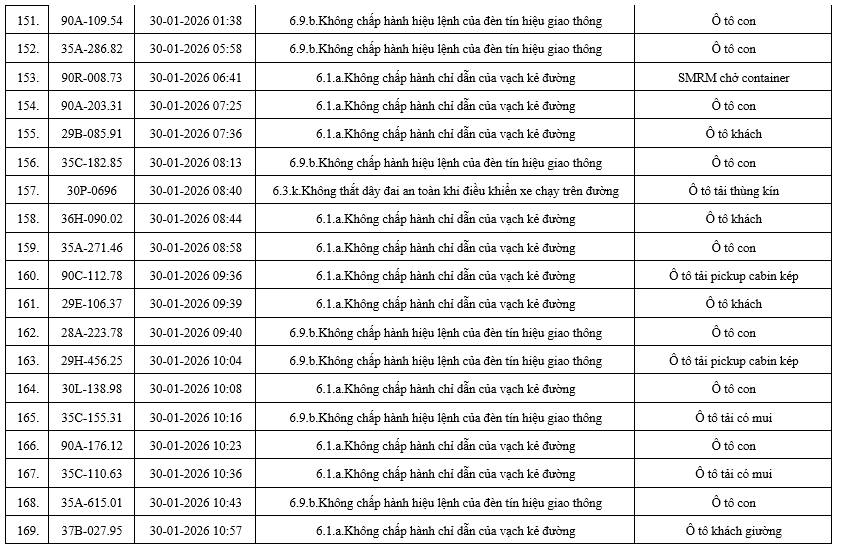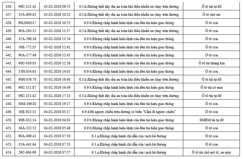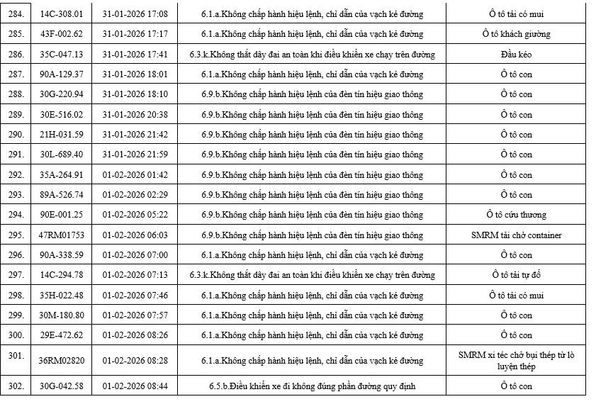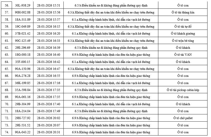 Mới đây, Phòng Cảnh sát giao thông (CSGT) công an tỉnh Ninh Bình, thông báo danh sách các phương tiện vi phạm trật tự, an toàn giao thông trên địa bàn tỉnh trong khoảng thời gian từ ngày 28/01/2026 đến ngày 05/02/2026.