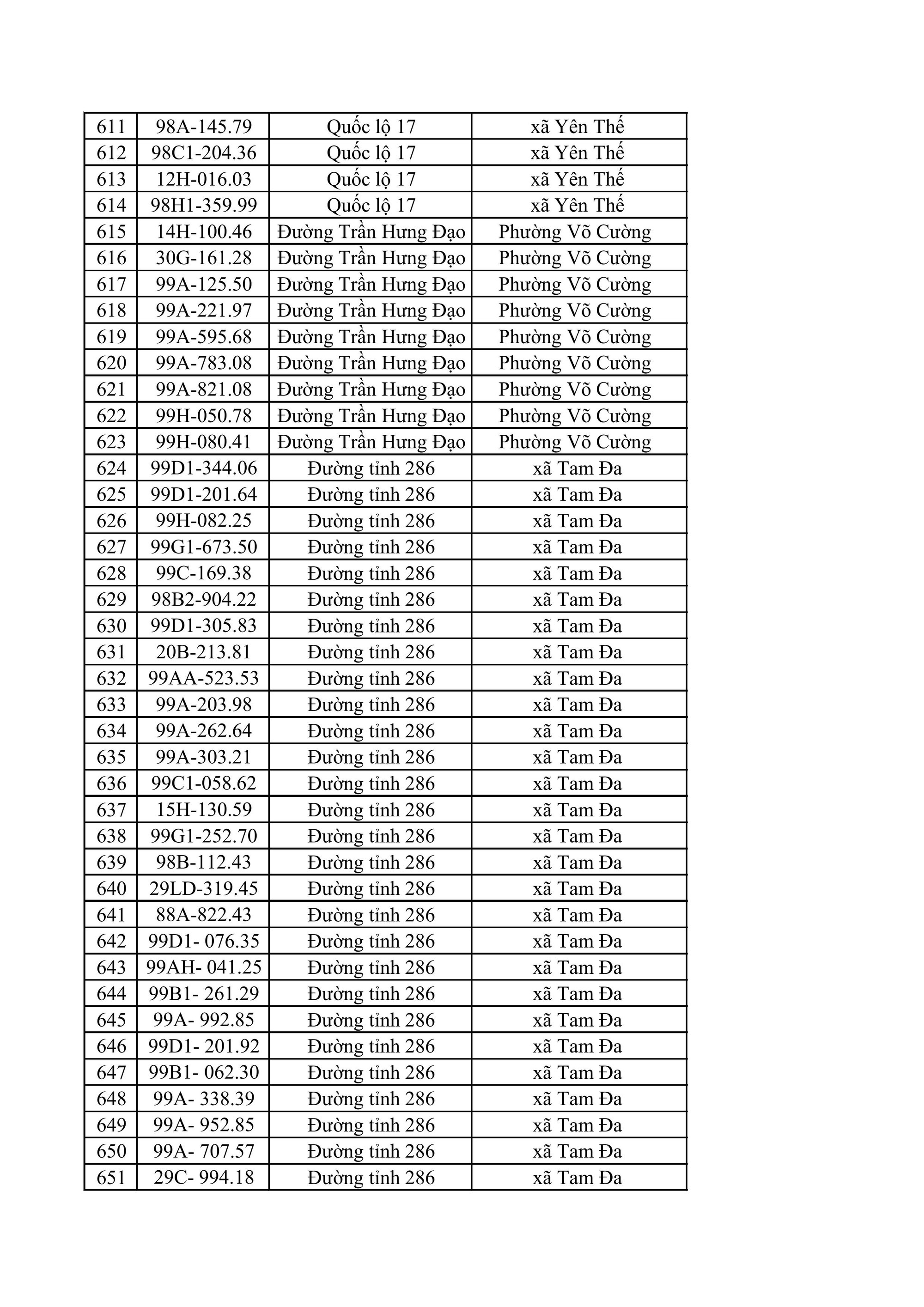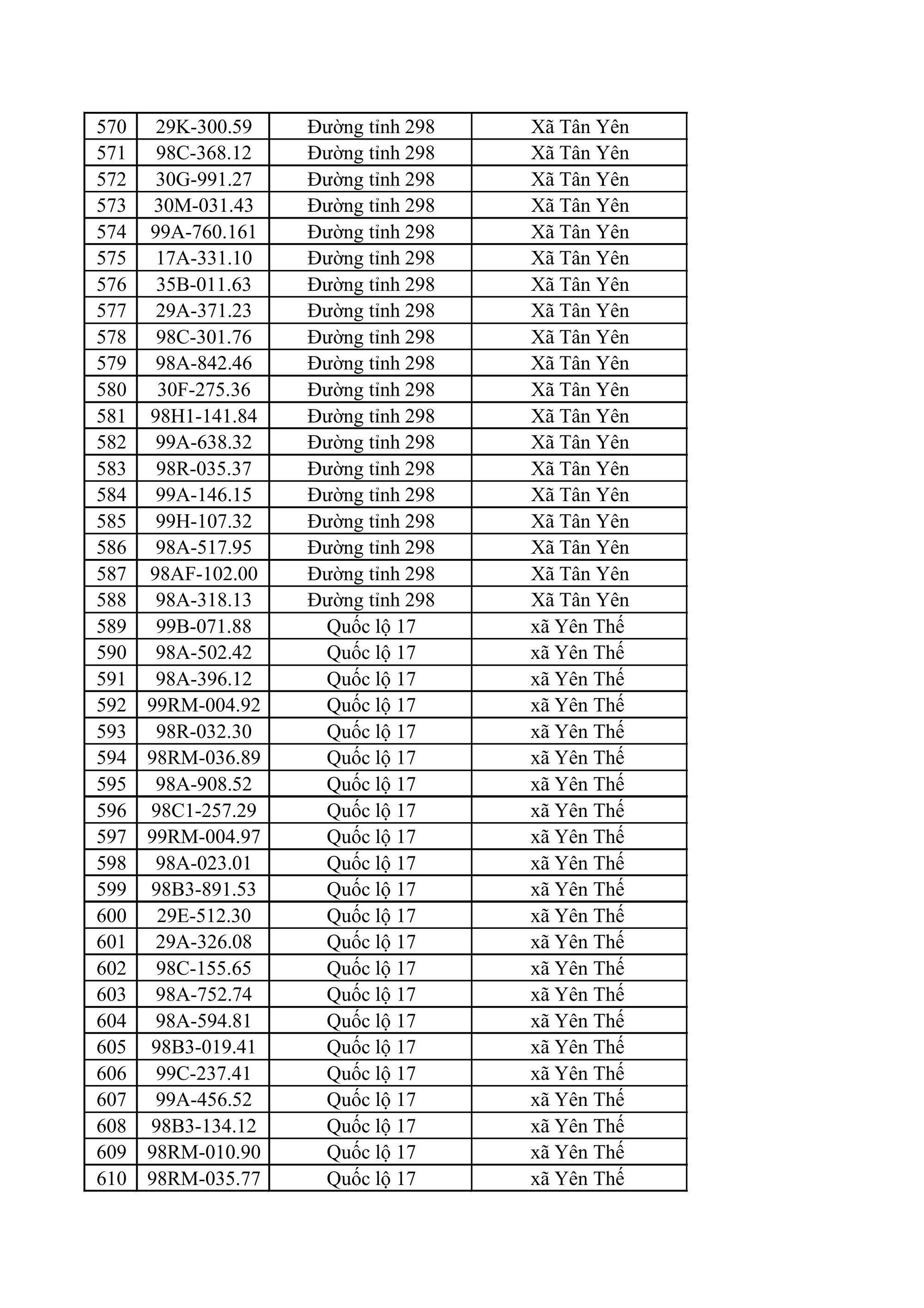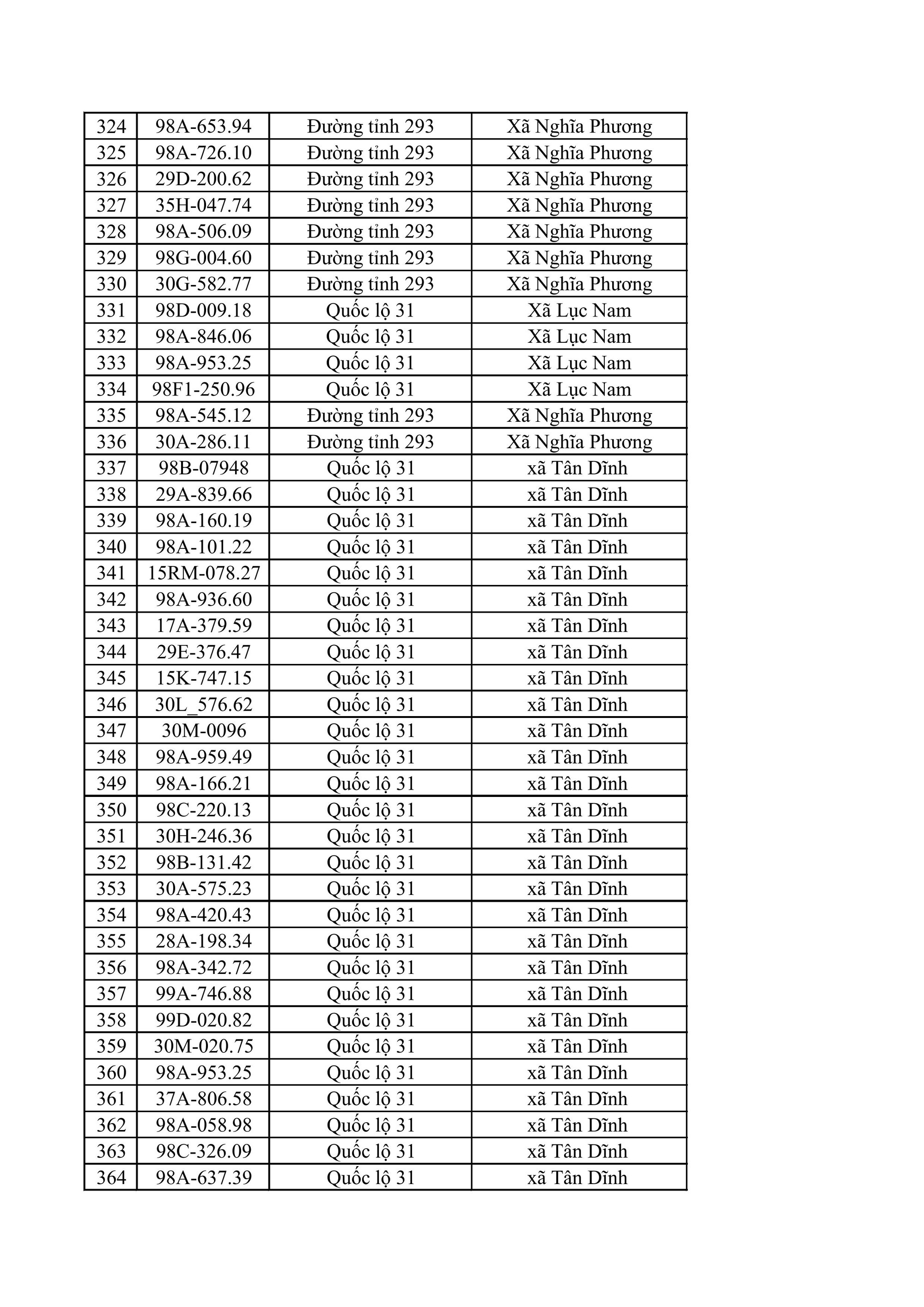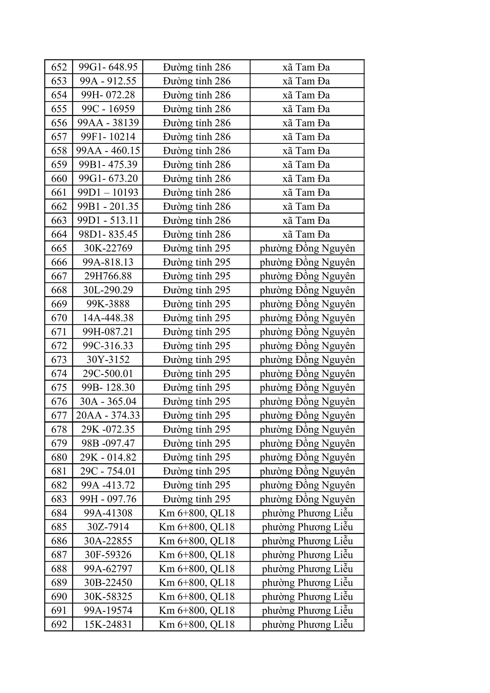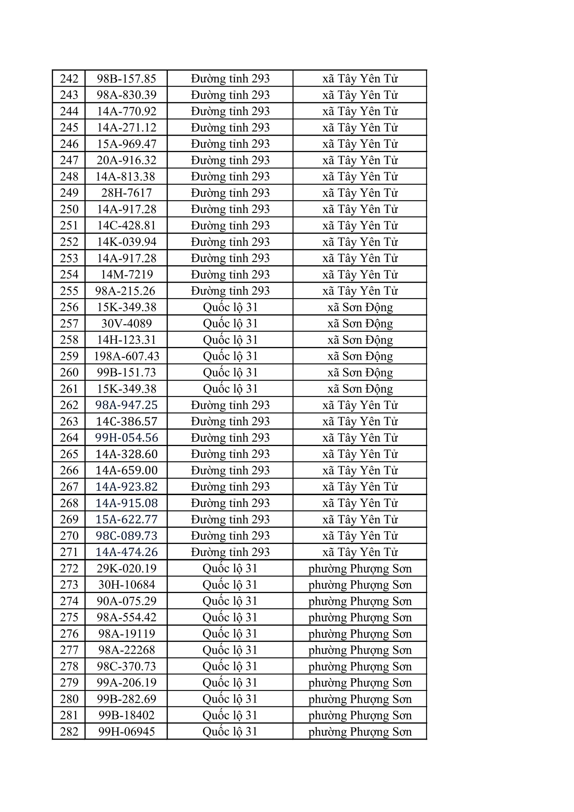 Đối với các tuyến đường tỉnh, lực lượng chức năng phát hiện 397 trường hợp vi phạm, phân bố trên nhiều tuyến như: ĐT 293 (75 trường hợp), ĐT 398 (66 trường hợp), ĐT 284 (47 trường hợp), ĐT 286 (41 trường hợp), ĐT 299 (36 trường hợp), ĐT 276 (34 trường hợp), ĐT 298 (30 trường hợp), ĐT 288 (26 trường hợp), ĐT 295 (23 trường hợp), ĐT 287 (15 trường hợp) và ĐT 295B (4 trường hợp).