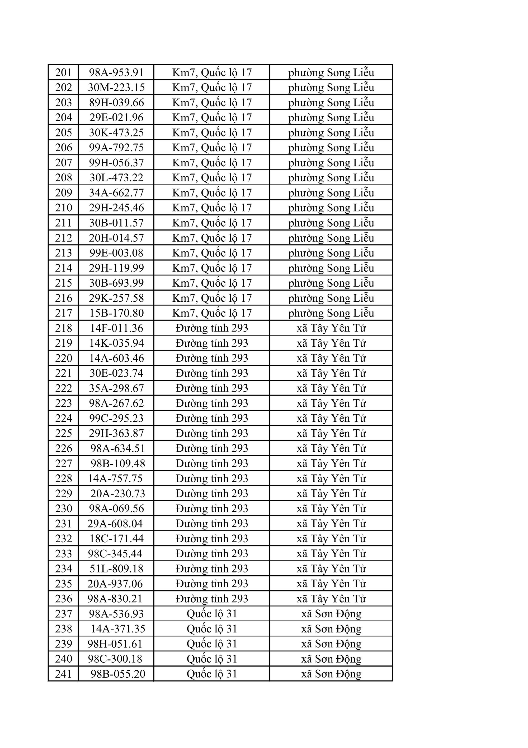 Trong đó, các tuyến quốc lộ ghi nhận 471 trường hợp vi phạm, gồm: Quốc lộ 1A có 163 trường hợp, Quốc lộ 17 có 143 trường hợp, Quốc lộ 31 có 87 trường hợp, Quốc lộ 18 có 40 trường hợp và Quốc lộ 37 có 38 trường hợp.