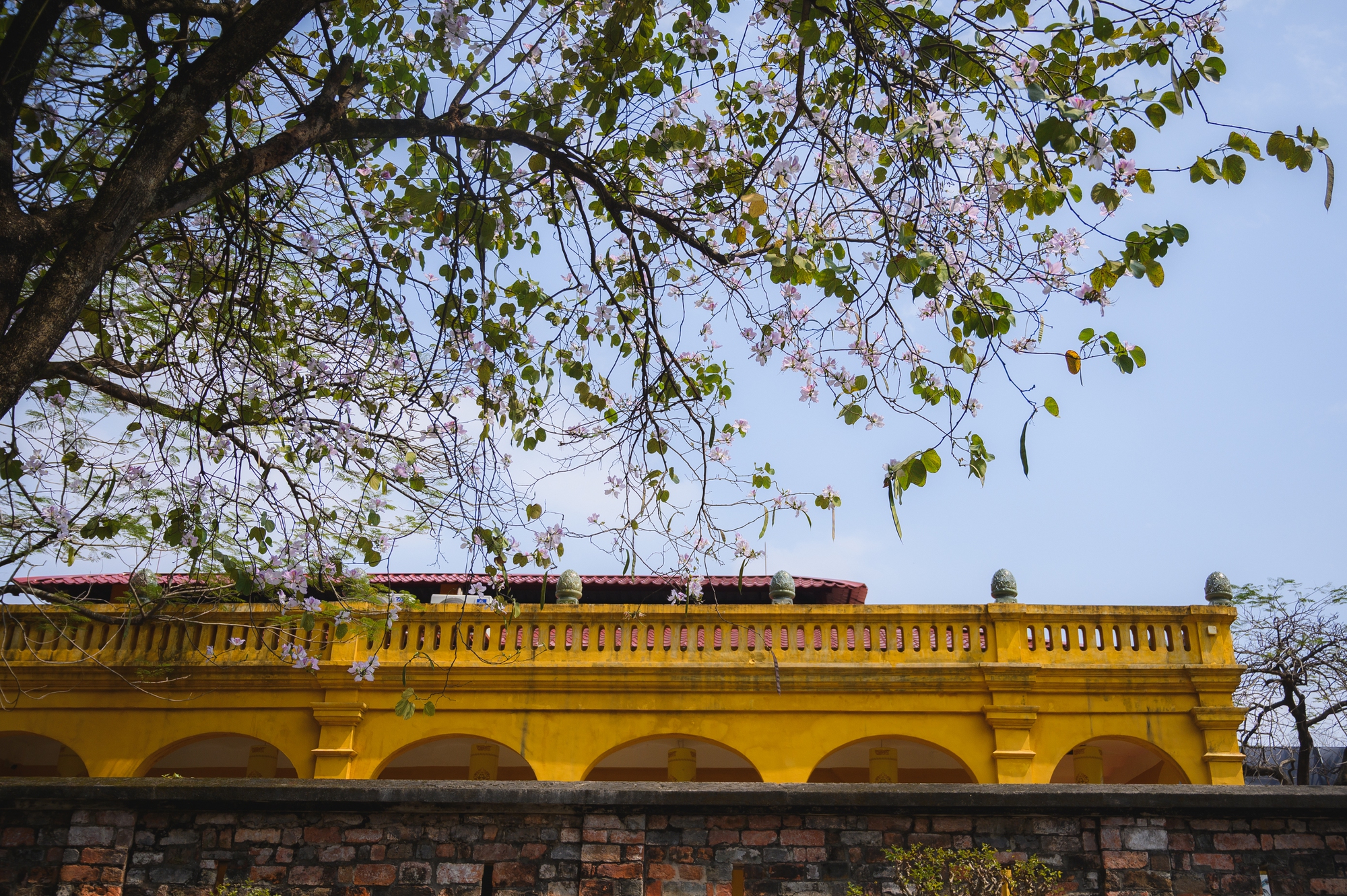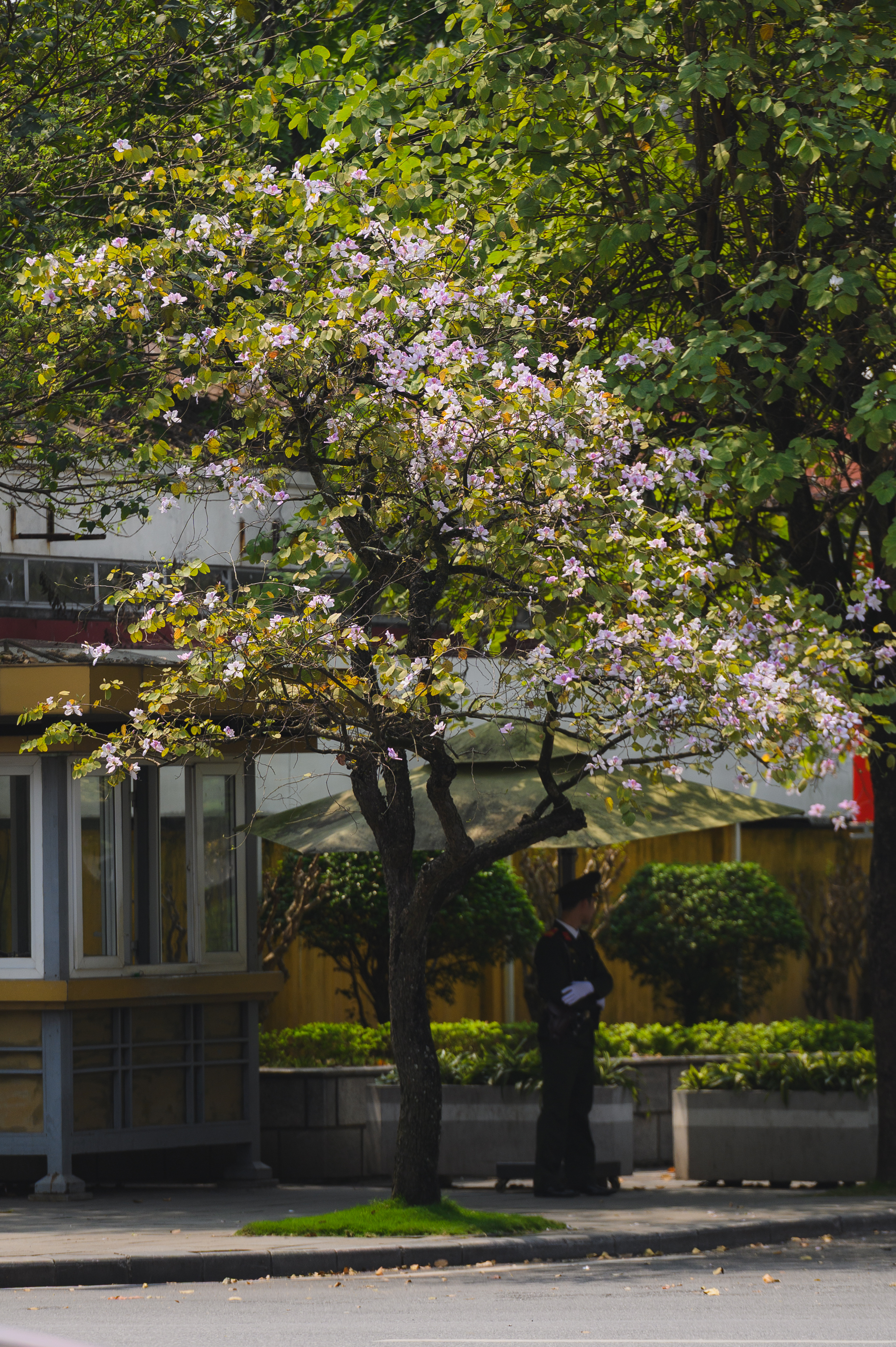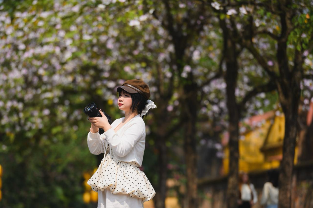 Lang thang dọc các con đường Hà Nội lúc này, thi thoảng lại bắt gặp một cây ban tím đã bắt đầu bung nở. Ở góc phố khác là sắc vàng rực rỡ của phong linh. Rồi đâu đó, những chùm hoa sưa trắng vẫn còn lác đác trên cành, mong manh và nhẹ bẫng trong gió. Thành phố như được phủ thêm một "lớp filter" dịu dàng của mùa xuân.