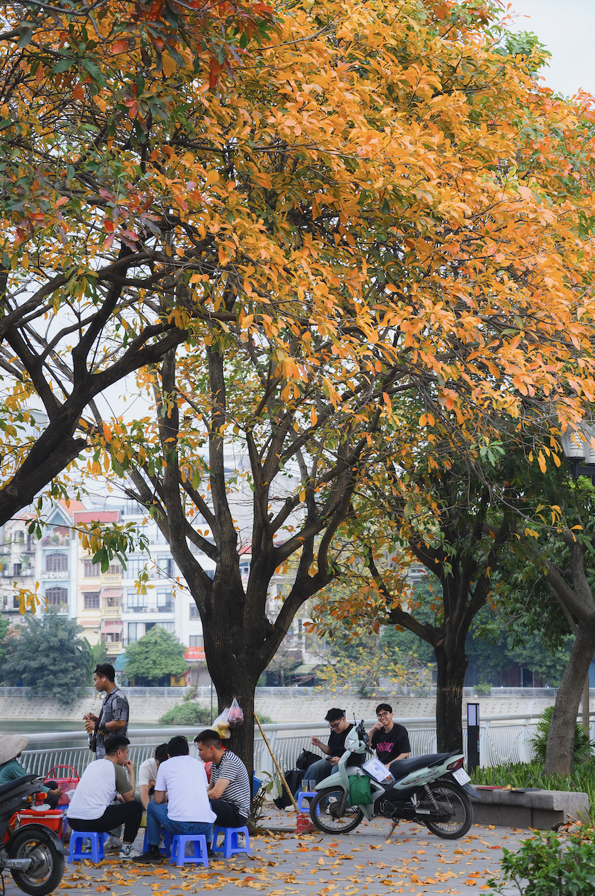 Không chỉ có hoa, thời điểm này Hà Nội còn bước vào mùa lá đỏ của lộc vừng. Trên nhiều tuyến phố, những tán lộc vừng chuyển màu rực rỡ, tạo nên khung cảnh rất khác so với sắc hoa dịu dàng. Đặc biệt, khu vực quanh tháp nước Hàng Đậu là nơi tập trung nhiều cây lộc vừng đẹp, thu hút đông đảo người dân đến dạo chơi và chụp ảnh.