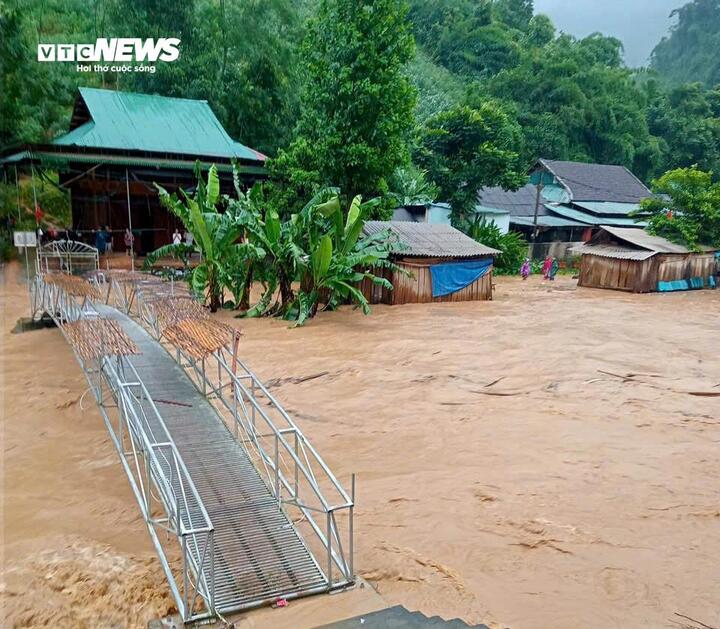 Mặc dù tâm bão đi qua, nhưng tại các xã miền núi Nghệ An, nước lũ tiếp tục dâng cao, mưa chưa ngớt.