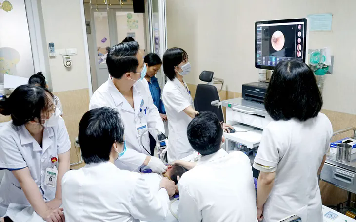 Tại đây, sau khi nội soi, chụp cắt lớp vi tính, cộng hưởng từ và thực hiện xét nghiệm, trẻ được chẩn đoán thoát vị não – màng não qua xương thái dương trái, gây rò dịch não tủy qua ống tai ngoài. Các bác sĩ đã phối hợp với chuyên gia phẫu thuật thần kinh của Bệnh viện Bạch Mai để xử lý ca bệnh.