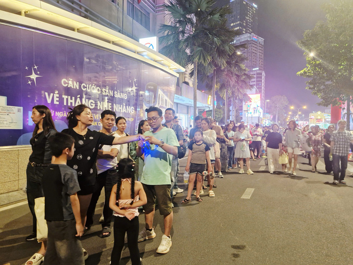Thuận lợi là các khu vực tập trung điểm vui chơi, tham quan, giải trí Tết tại trung tâm TP.HCM đều nối liền nhau và nằm ngay các nhà ga metro như ga Bến Thành, ga Nhà hát Thành, ga Ba Son nên khách di chuyển rất dễ dàng. Từ sáng sớm đến gần 23h đêm, tại các nhà ga, đặc biệt là ga Nhà hát Thành phố luôn trong cảnh khách chật cứng xếp hàng chờ đi tàu.