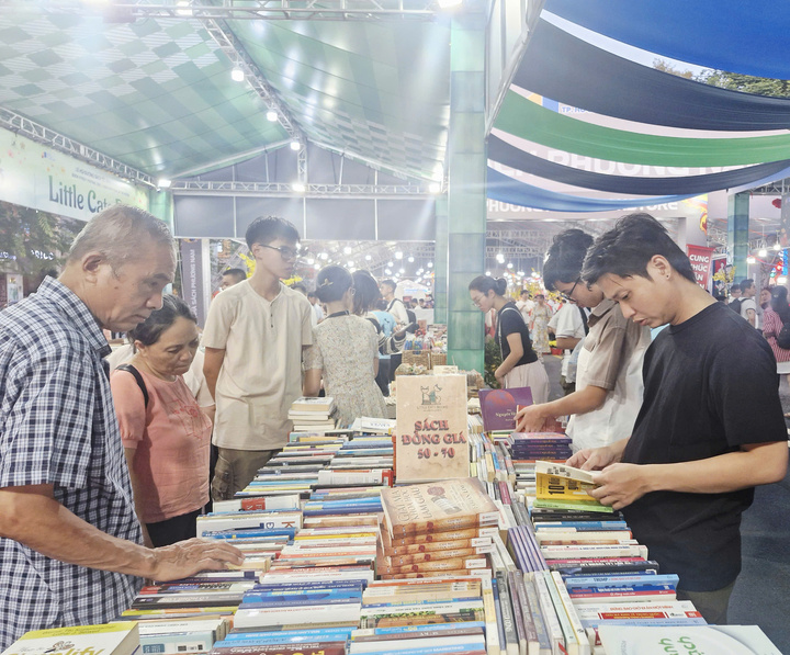 Khách tập trung đông đúc tại các quầy sách tối mùng 2 Tết.