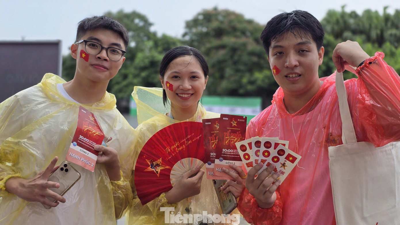 Khán giả check-in cùng vé miễn phí và cờ Tổ quốc. Vé tham dự miễn phí được thiết kế độc đáo, in bản chép tay gốc ca khúc Tiến quân ca của nhạc sĩ Văn Cao. Trước sân vận động, nhiều người đem những lá cờ nhỏ bày bán, giá khoảng 10.000 đồng/chiếc.