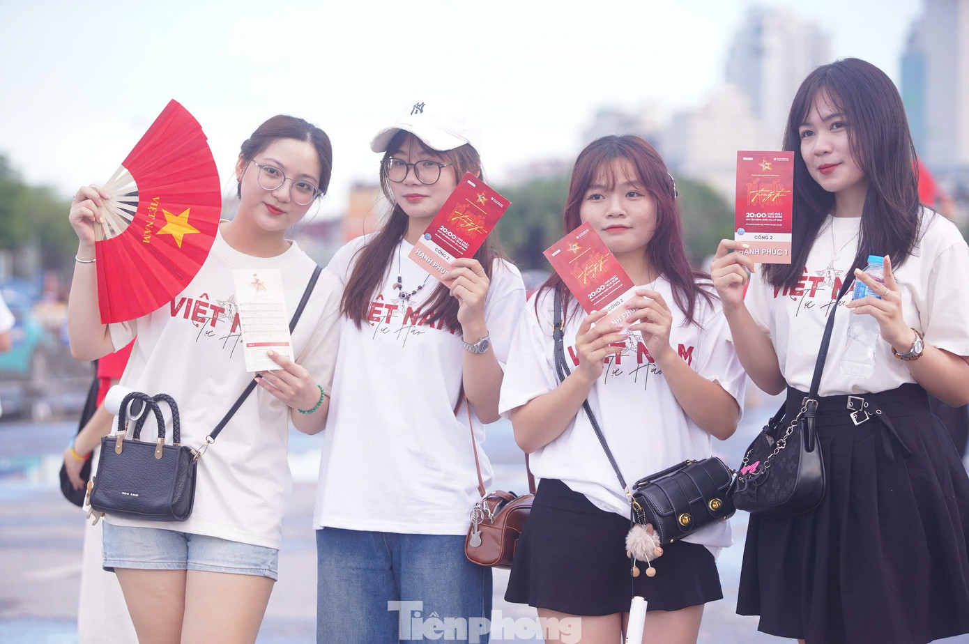 Đôi bạn Thành Đạt - Hiểu Lan vượt quãng đường khoảng 100 km từ Phú Thọ đến Hà Nội. Cả hai có mặt ở điểm tổ chức concert khoảng vài giờ trước khi chương trình bắt đầu. Thành Đạt (phải) cho biết cố gắng săn vé vì muốn hòa mình vào chương trình lan tỏa lòng yêu nước, hướng đến dịp đại lễ của cả dân tộc. "Hành trình săn vé miễn phí không dễ. Nhờ yếu tố may mắn, chúng tôi đã cầm trên tay chiếc vé concert", Thành Đạt chia sẻ với Tiền Phong.