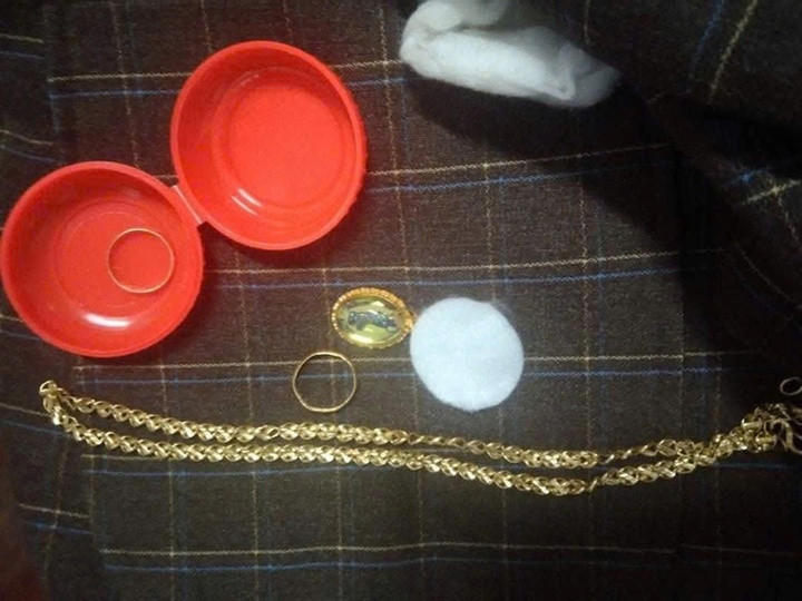 Trước đó, trong quá trình phân loại áo quần được quyên góp để hỗ trợ bà con đồng bào bị lũ lụt Nam Trung Bộ, bà Hoàng Thị Triều (67 tuổi, trú xã Vĩnh Linh) phát hiện tài sản gồm 1 hộp trang sức chứa 2 nhẫn tròn kim loại màu vàng, 1 dây chuyền kim loại và 1 mặt tượng đá bọc kim loại màu vàng, ước khoảng 4 chỉ vàng.