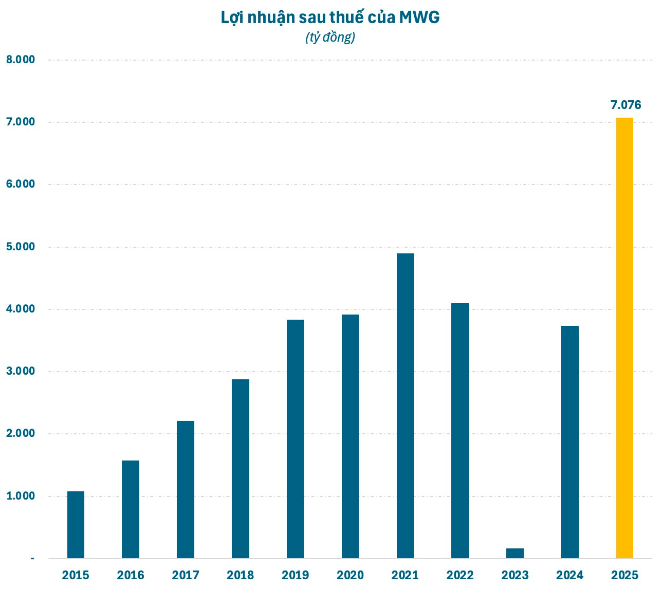 Bước sang năm 2026, Thế Giới Di Động đặt mục tiêu doanh thu thuần đạt 185.000 tỷ đồng và lợi nhuận sau thuế hợp nhất đạt 9.200 tỷ đồng, lần lượt tăng trưởng 18% và 30% so với cùng kỳ. Đây là mục tiêu đầy tham vọng. Nếu hoàn thành kế hoạch đề ra, “đế chế” bán lẻ của ông Nguyễn Đức Tài sẽ lập kỷ lục mới.