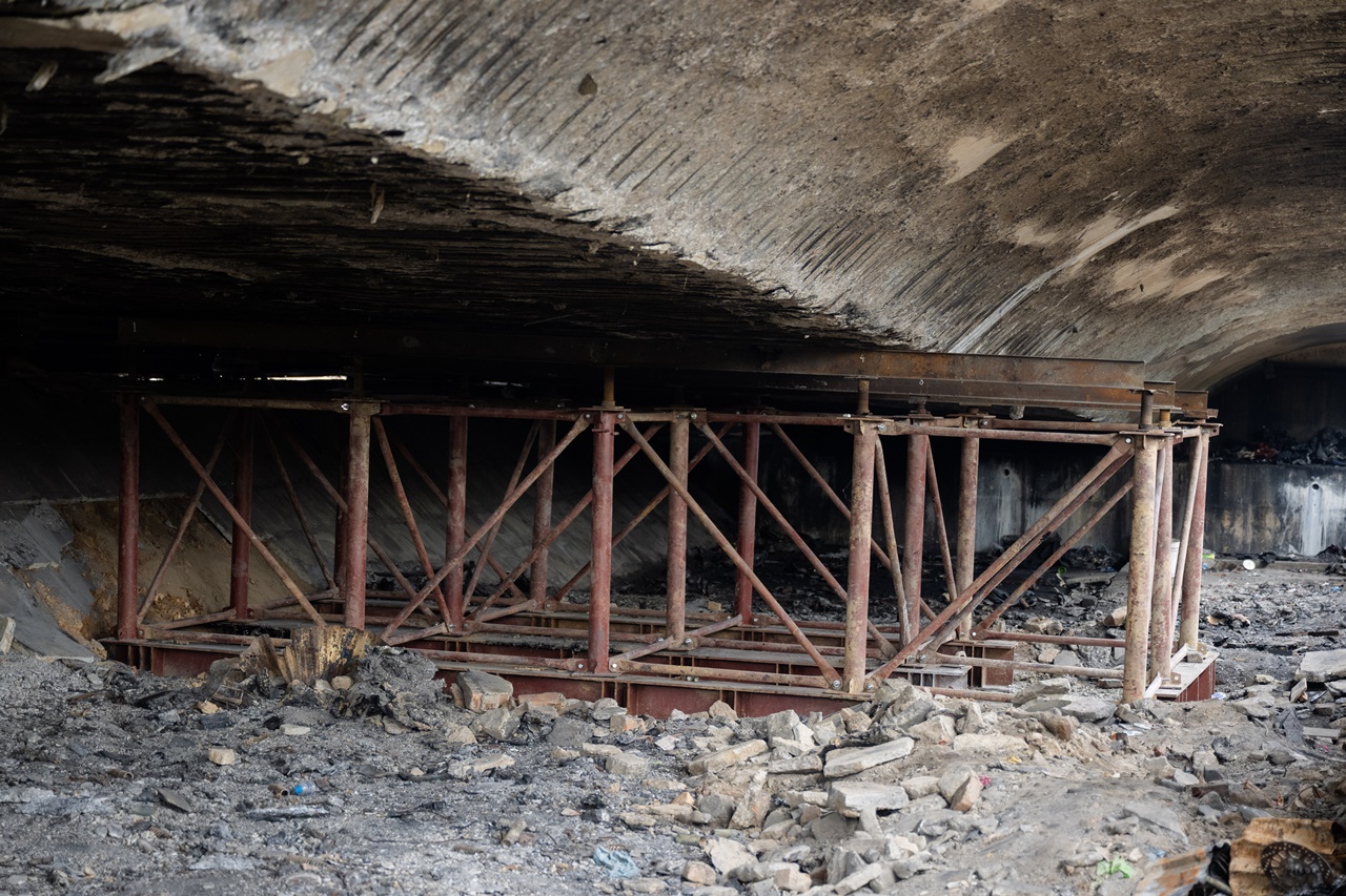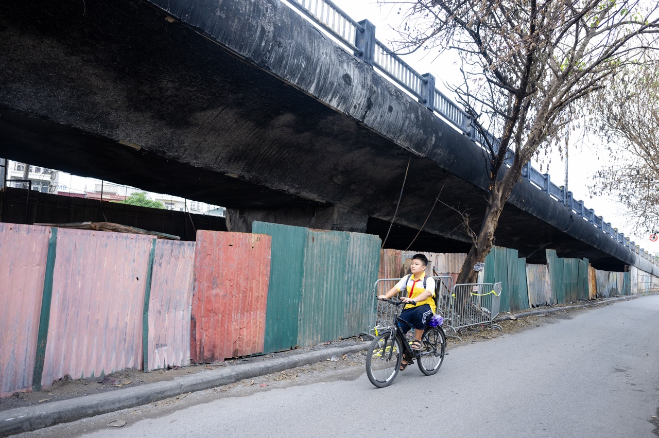 Để phòng ngừa rủi ro, Sở Xây dựng Hà Nội đã chỉ đạo lắp đặt một trụ sắt tạm thời tại đoạn dầm bị tác động. Trụ này đặt cách đáy dầm từ 5–10cm, không tỳ trực tiếp vào kết cấu nhằm giám sát biến dạng và tránh thay đổi sơ đồ chịu lực. Đây chỉ là giải pháp tình thế để theo dõi an toàn công trình.