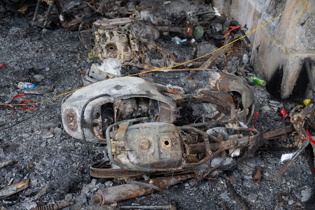 Mùi khét vẫn còn phảng phất, khung cảnh hoang tàn gợi lại sự dữ dội của ngọn lửa