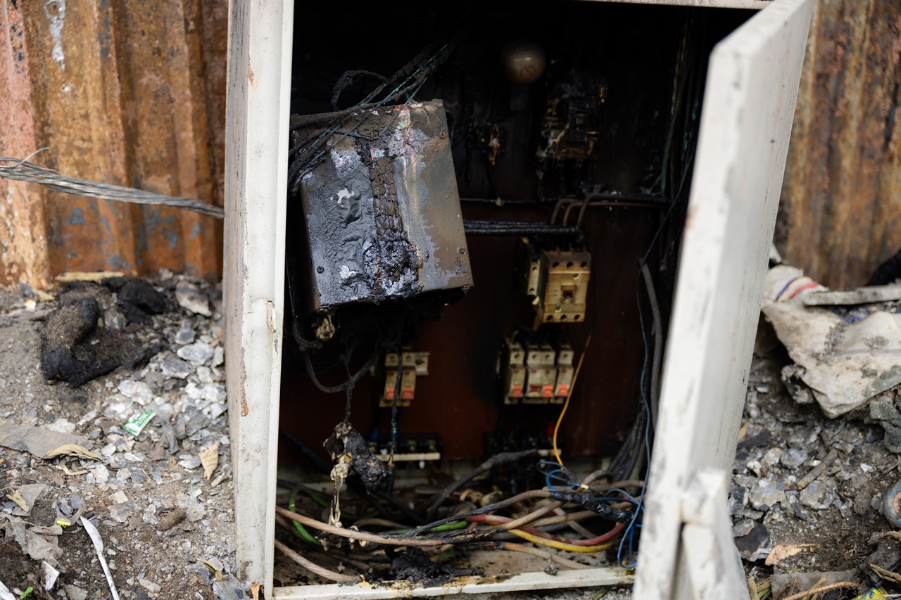 Không chỉ kết cấu cầu chịu ảnh hưởng, hệ thống hạ tầng kỹ thuật cũng bị hư hỏng nặng. Tủ điện chiếu sáng T2A đặt dưới gầm cầu bị cháy hoàn toàn, khiến 54 trụ đèn chiếu sáng trên cầu Vĩnh Tuy (hướng từ Long Biên sang nội thành) mất điện trong nhiều ngày