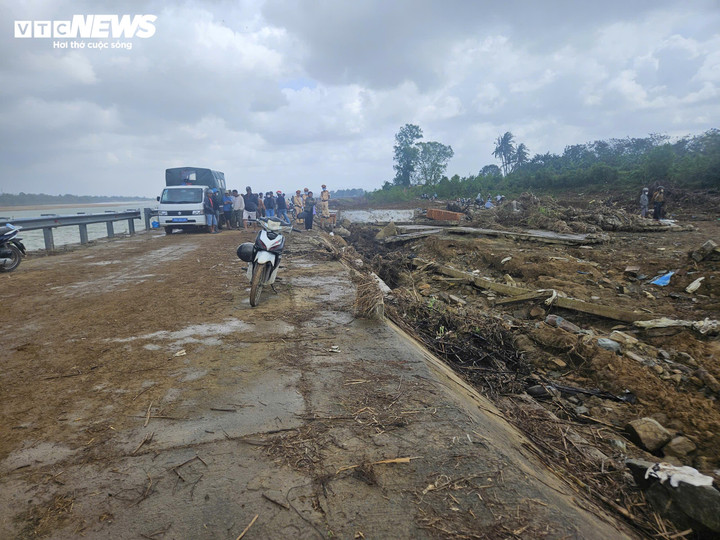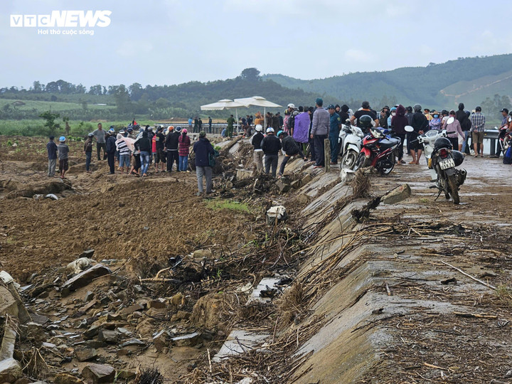 Theo người dân, lúc 4 nạn nhân trú mưa dưới bờ kè thì có xe trọng tải nặng chạy ngang qua.
