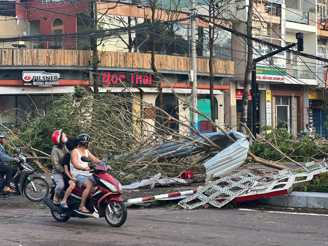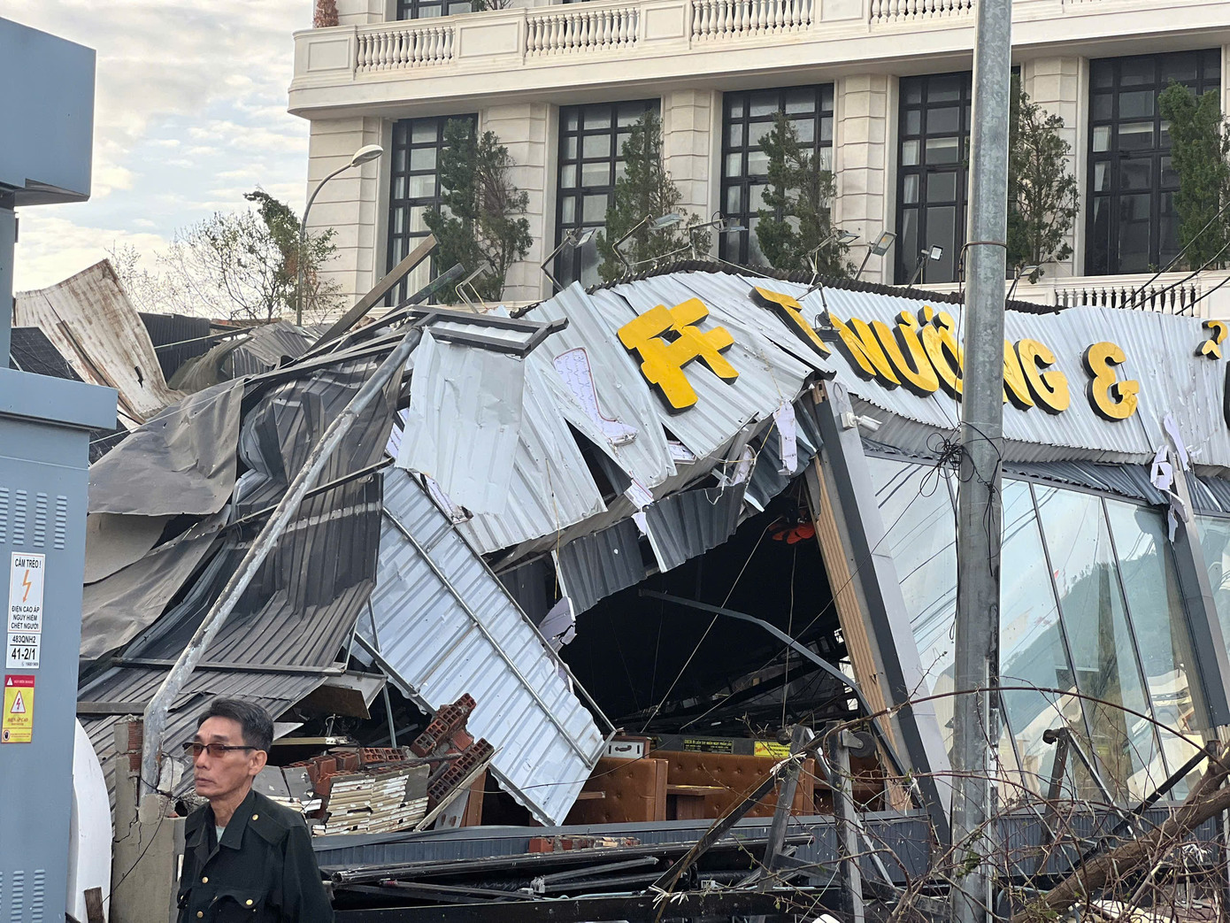 Một quán nhậu bị hư hỏng nặng sau khi cơn bão lịch sử này đi qua.