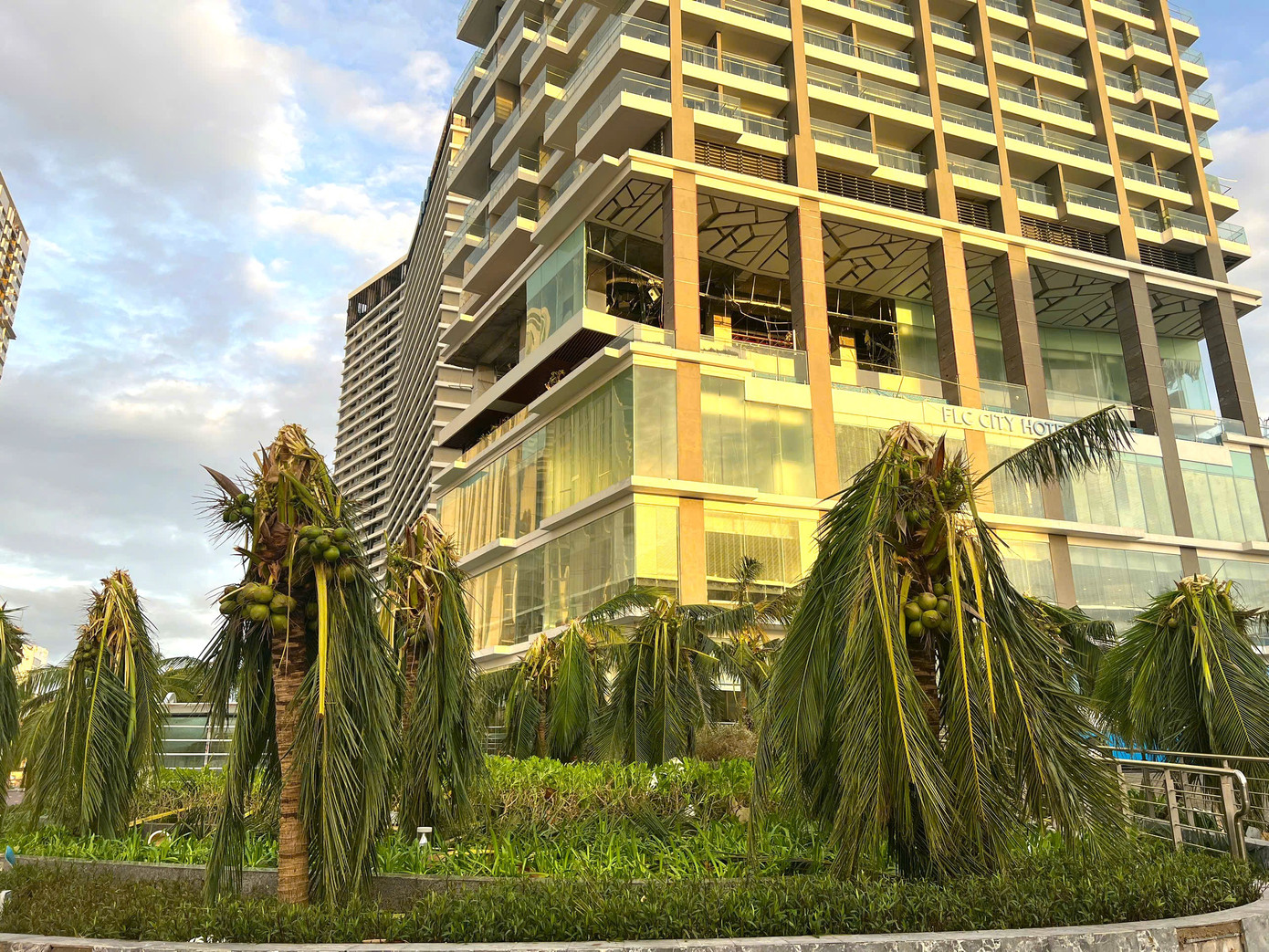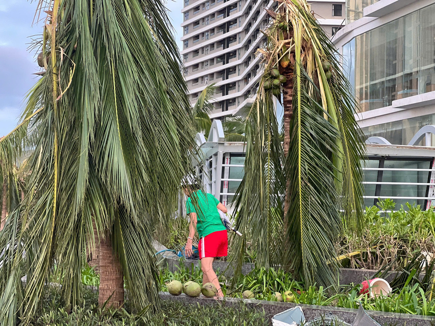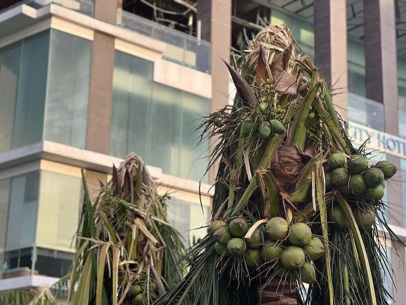 Những cây dừa bị gió táp khu vực phường Quy Nhơn.