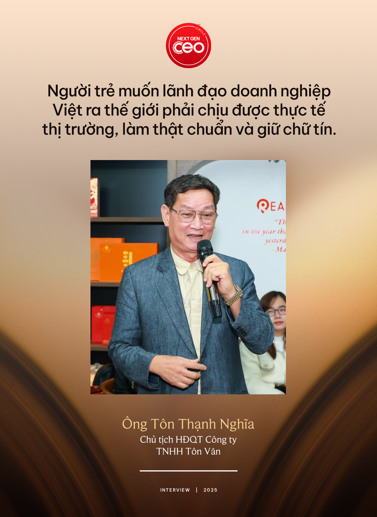 Với những trải nghiệm đó, ông Nghĩa được mời tham gia Hội đồng Đề cử Next Gen CEO 2025. Ông không ngồi đó để “ban lời khuyên” chung chung, mà để đặt ra tiêu chuẩn dành cho thế hệ tiếp nối: "Người trẻ muốn lãnh đạo doanh nghiệp Việt ra thế giới phải chịu được thực tế thị trường, làm thật chuẩn và giữ chữ tín".