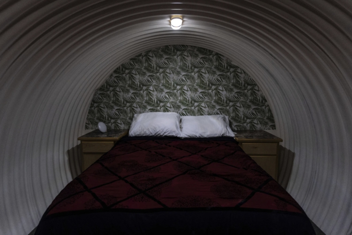 Phòng ngủ bên trong một căn hầm trú ẩn dưới lòng đất. (Nguồn: AP)