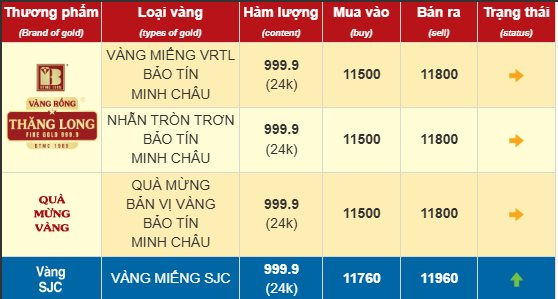 Trong khi đó, giá vàng miếng tại các doanh nghiệp này đồng loạt tăng thêm 300.000 đồng/lượng, lên mức 117,6 – 119,6 triệu đồng/lượng.