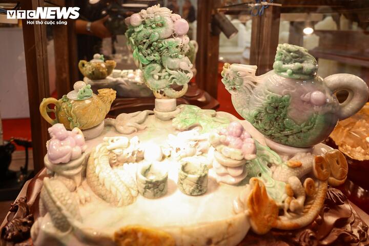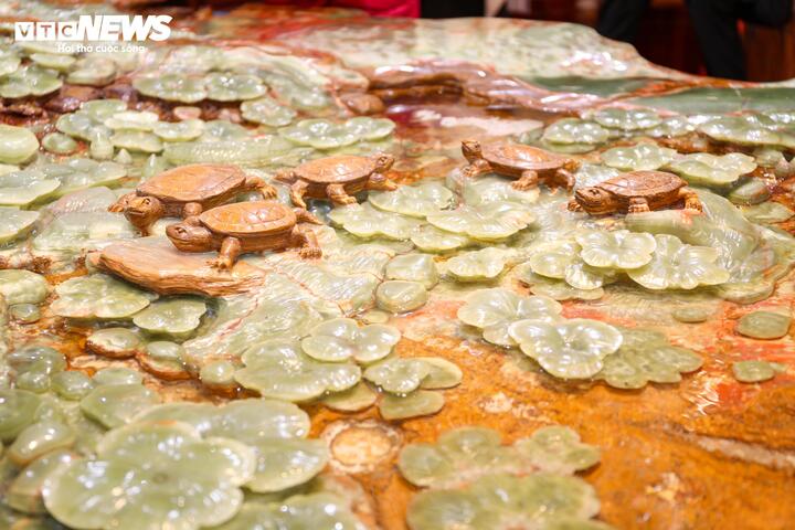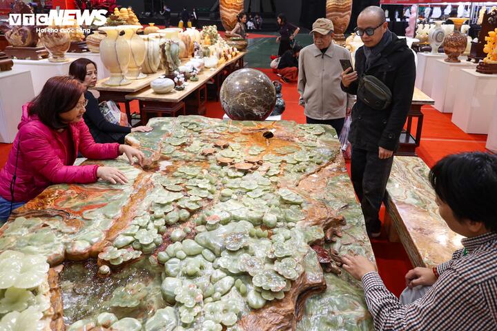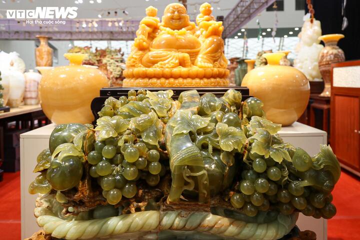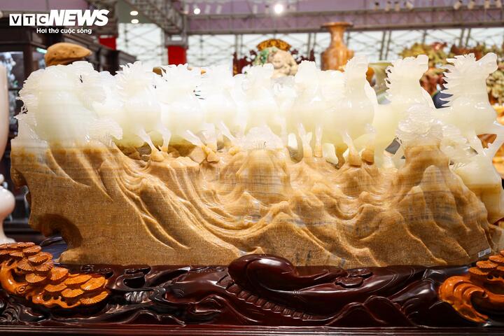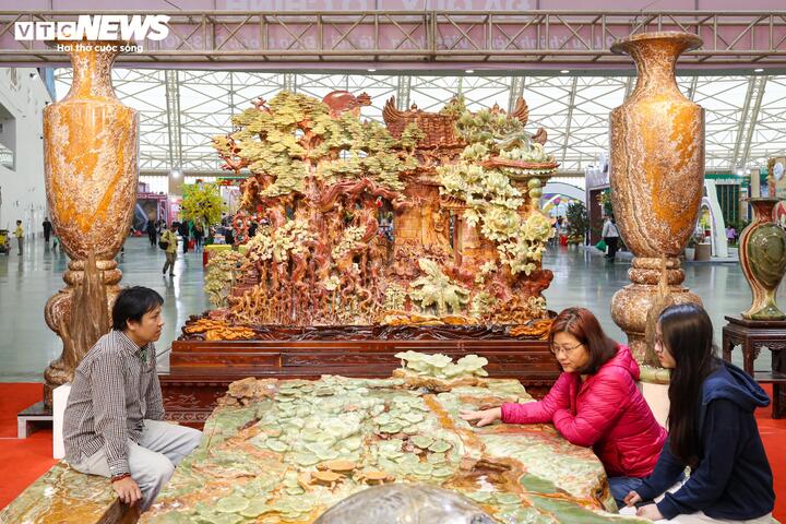 Trong đó, đáng chú ý là bức tranh đá quý được làm từ đá onyx có giá lên tới 9,5 tỷ đồng, gây ấn tượng mạnh với khách tham quan.