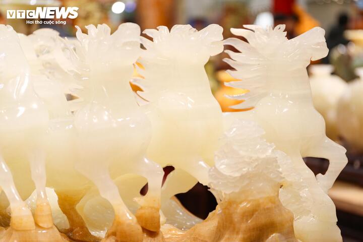 Được tạc từ đá onyx nguyên khối, tác phẩm Bát Mã khắc họa hình ảnh 8 con ngựa phi nước đại, gửi gắm khát vọng về một Việt Nam phát triển mạnh mẽ, với mức giá hơn 800 triệu đồng.