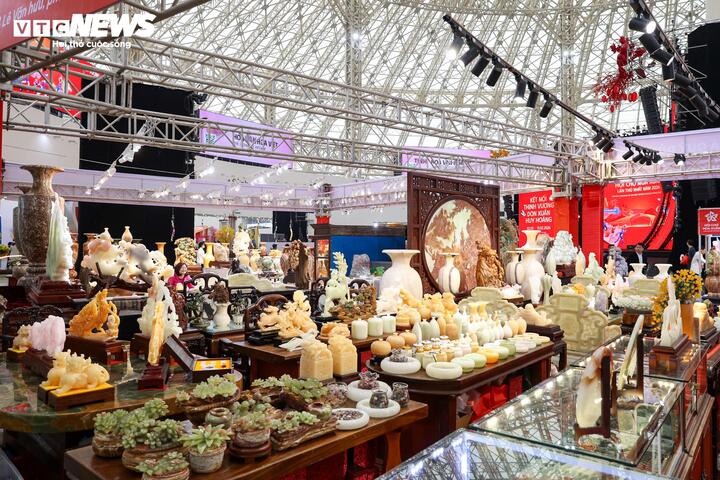Hội chợ Mùa Xuân 2026 quy tụ hàng trăm sản phẩm đá quý đa dạng, thu hút đông đảo người dân đến tham quan, mua sắm.