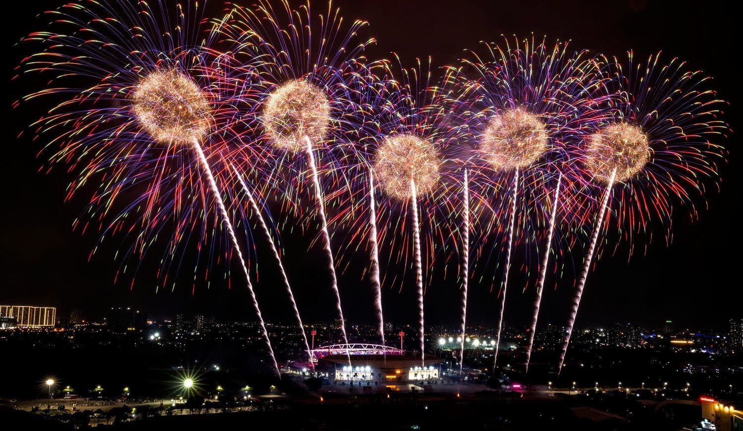 Tổng duyệt bắn pháo hoa chào mừng Đại hội đại biểu toàn quốc lần thứ XIV của Đảng. Ảnh: TTXVN