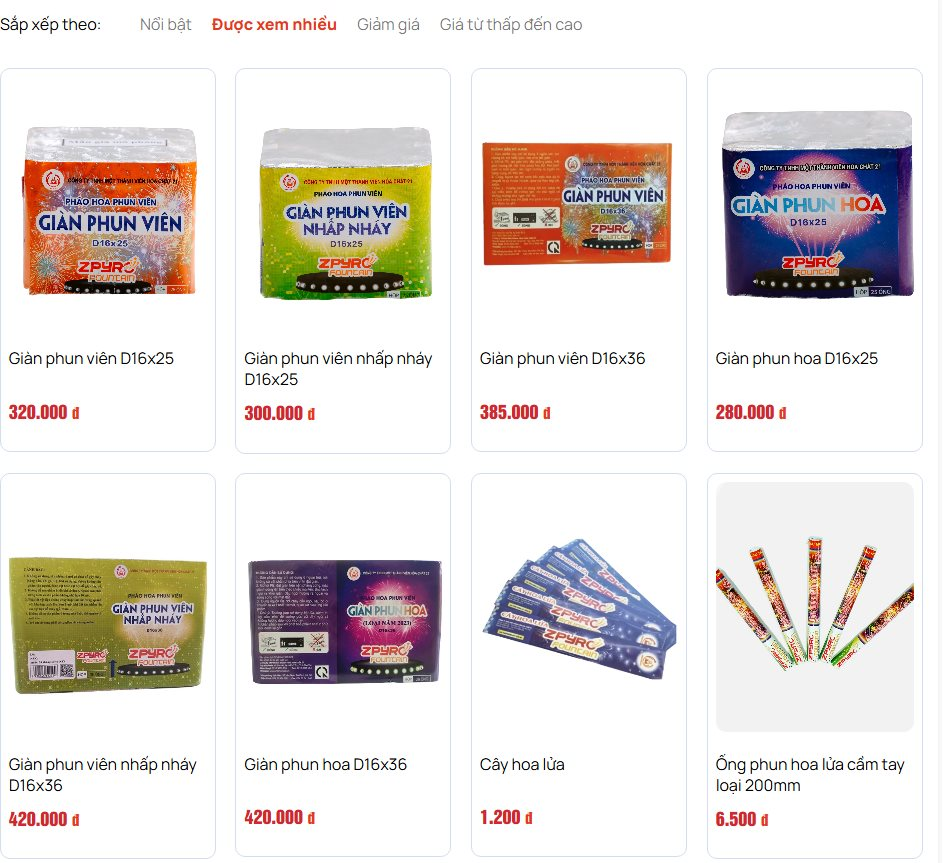 Thông tin công bố cho biết các dòng sản phẩm chủ lực như giàn phun viên, giàn phun hoa có giá dao động từ 280.000 đồng đến 420.000 đồng, trong khi các sản phẩm phụ trợ có mức giá từ 24.000 đồng đến 54.000 đồng.