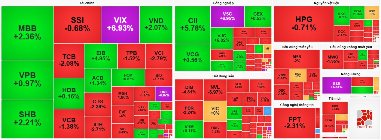 Thị trường rực lửa, VN-Index “bốc hơi” hơn 10 điểm