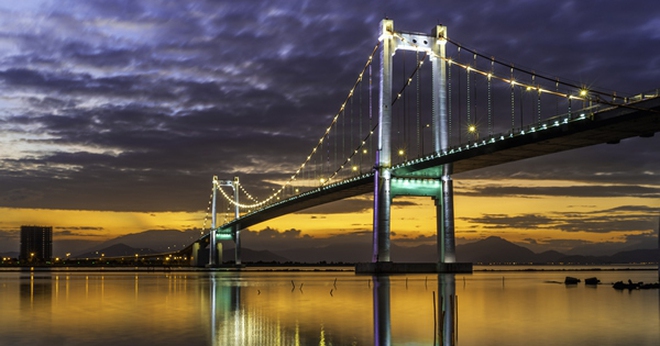 Giải thích: Dự án cầu Thuận Phước được khởi công tháng 11/2003, khánh thành tháng 2/2019, dài 2.119m (phần treo dây văng 655m ngoài đường dẫn và cầu BT dự ứng lực), bắc ngang vịnh biển Đà Nẵng, tổng mức đầu tư hơn 998,461 tỉ đồng. Đây là một trong những cây cầu dây văng hiện đại, dài nhất Việt Nam, khởi công chưa đầy 3 năm sau cầu Sông Hàn, nối mạch đường ven vịnh với tuyến ven biển đông vào Hội An.