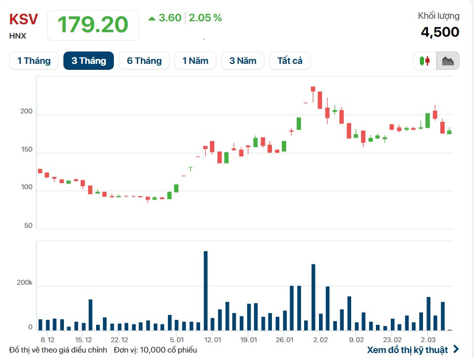 Trong khi đó, tính đến phiên giao dịch gày 05/03/2026, thị giá cổ phiếu KSV trên sàn chứng khoán đang giao dịch quanh mức 179.000 đồng/cổ phiếu. Với mức giá chào mua chỉ tương đương khoảng 5,8% giá trị giao dịch thực tế trên sàn, không có bất kỳ cổ đông nào thực hiện chuyển quyền sở hữu qua VSDC, dẫn đến việc doanh nghiệp không thực hiện được kế hoạch thu hồi vốn như dự kiến.
