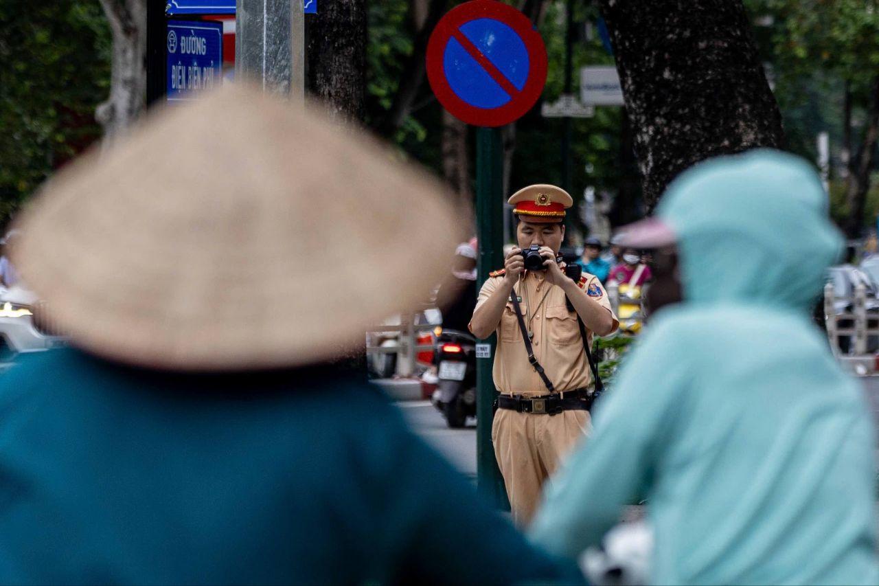 Tại mỗi điểm, lực lượng chức năng bố trí một cán bộ CSGT sử dụng máy quay (kèm chân máy) được trang bị để công khai ghi hình phạt nguội người điều khiển xe máy vi phạm giao thông.