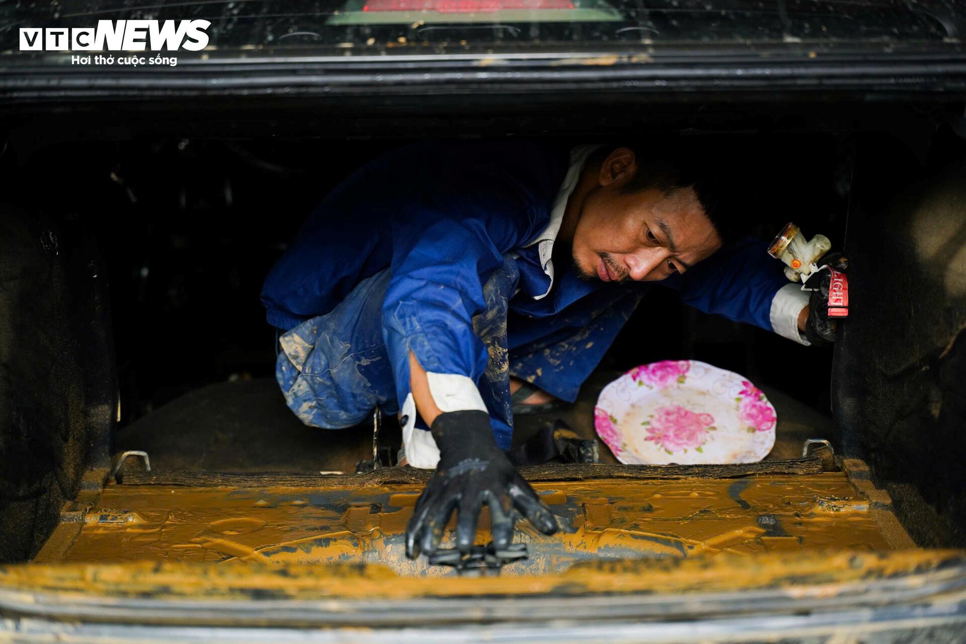 Anh Nguyễn Thanh Tùng, chủ một gara ô tô chia sẻ: "Lượng xe tìm đến xưởng những ngày này rất nhiều, gấp 2-3 lần ngày thường. Các xe khi được chuyển đến xưởng đều trong tình trạng hỏng hóc nặng. Mùi ẩm mốc, bùn đất đặc quánh trong cốp xe và khoang nội thất. Bùn đất không chỉ gây ẩm mốc mà còn chứa chất ăn mòn, tấn công các chi tiết kim loại và hệ thống điện. Vì vậy việc đầu tiên cần làm là chẩn đoán trình trạng xe".