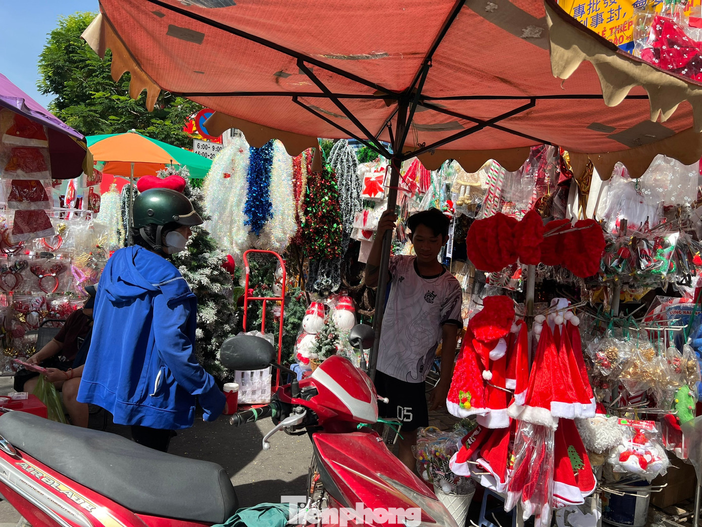 Ngày 15/12, đường Hải Thượng Lãn Ông (phường Chợ Lớn, TPHCM), các cửa hàng kinh doanh đồ trang trí Giáng sinh bày bán đủ các sản phẩm trang trí từ cây thông, ông già Noel, dây đèn, kim tuyến... với giá khá mềm, chỉ từ vài chục nghìn đồng đến 1 triệu đồng/sản phẩm.