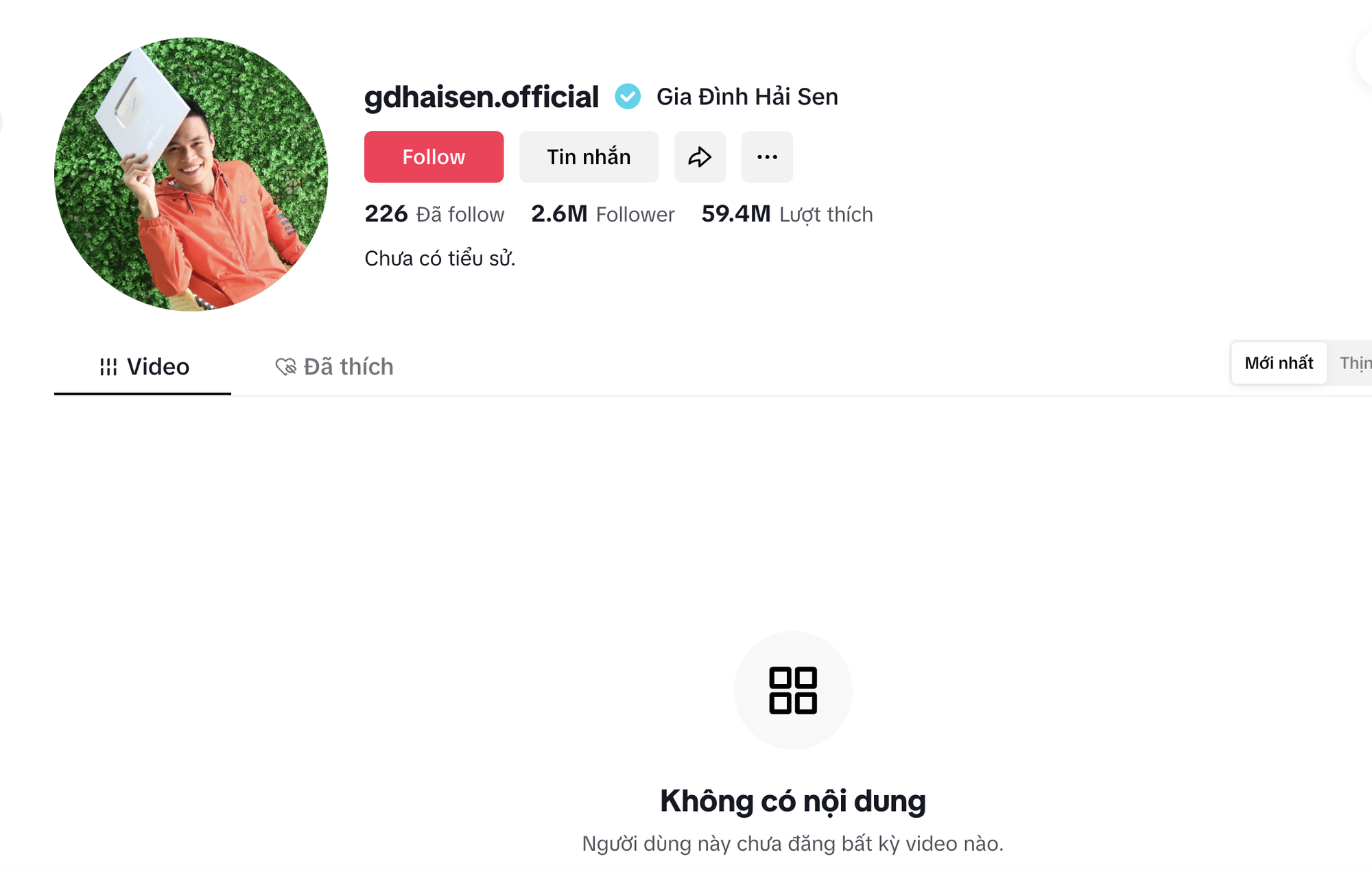 Kênh Tiktok Gia Đình Hải Sen đã ẩn hết nội dung mà không có lời giải thích
