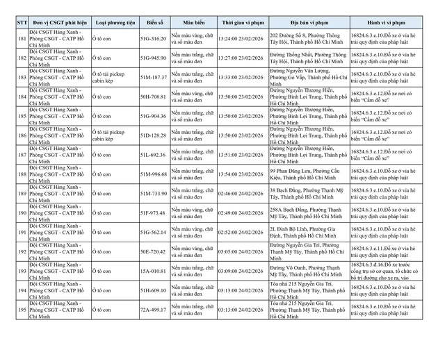 Thống kê trong tháng 2.2026 cho thấy, bên cạnh hoạt động tuần tra, kiểm soát và lập biên bản trực tiếp đối với 313 trường hợp ô tô vi phạm, lực lượng chức năng còn ghi hình và gửi thông báo phạt nguội đối với 209 phương tiện mắc lỗi tương tự dưới đây: