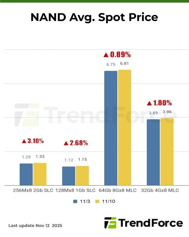 Dự báo giá DRAM cho PC cũng được nâng từ 18-23% lên 25-30%, trong khi giá DRAM cho máy chủ, vốn là tâm điểm của cuộc khủng hoảng nguồn cung, được dự báo sẽ tăng 28-33%. Thị trường NAND flash cũng được dự đoán sẽ tiếp tục tăng giá mỗi quý cho đến quý IV năm sau.