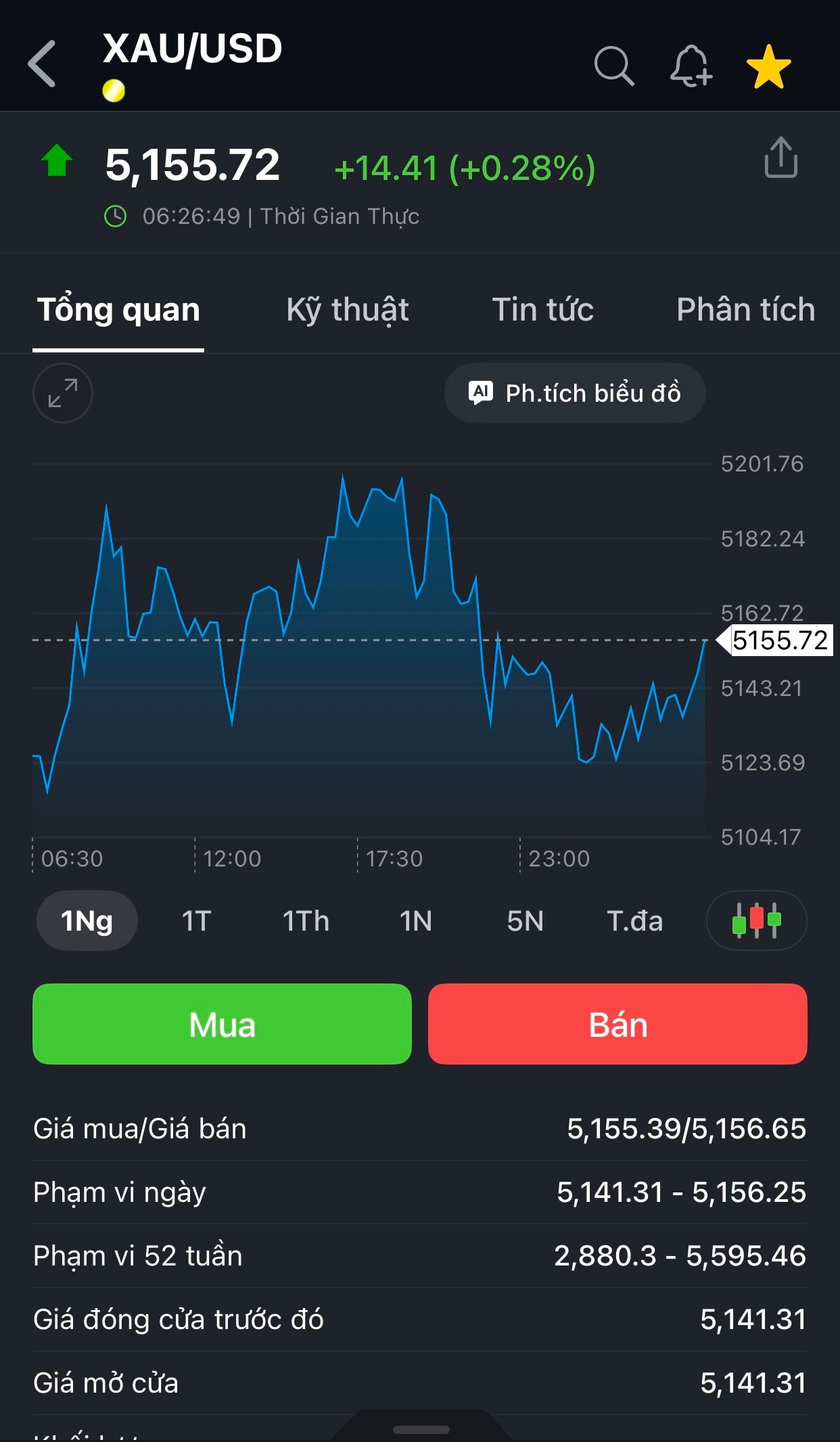 Trong phiên, có thời điểm phe mua đã đẩy giá chạm ngưỡng 5.190 USD/ounce trước khi áp lực chốt lời nhẹ khiến giá điều chỉnh về vùng hiện tại.