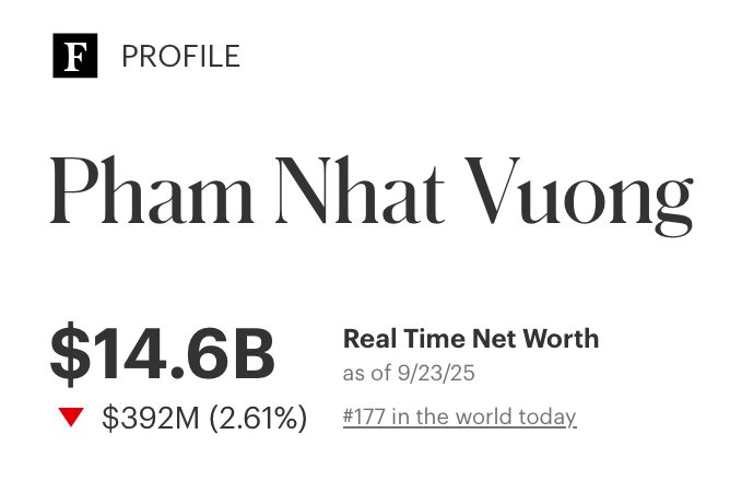 Không chỉ giá cổ phiếu bứt phá, tài sản cá nhân của ông Phạm Nhật Vượng – Chủ tịch Vingroup cũng tăng mạnh. Theo thống kê của Forbes, tài sản ông Phạm Nhật Vượng lên cao nhất 15 tỷ USD, lọt Top 200 người giàu nhất thế giới. Động thái pháp lý quyết liệt của Vingroup vì thế không chỉ mang ý nghĩa bảo vệ danh dự mà còn chứng minh sức mạnh tài chính và tầm ảnh hưởng của doanh nghiệp.