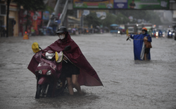 Nhiều tuyến đường ở Hà Nội ngập sâu sau bão số 10.