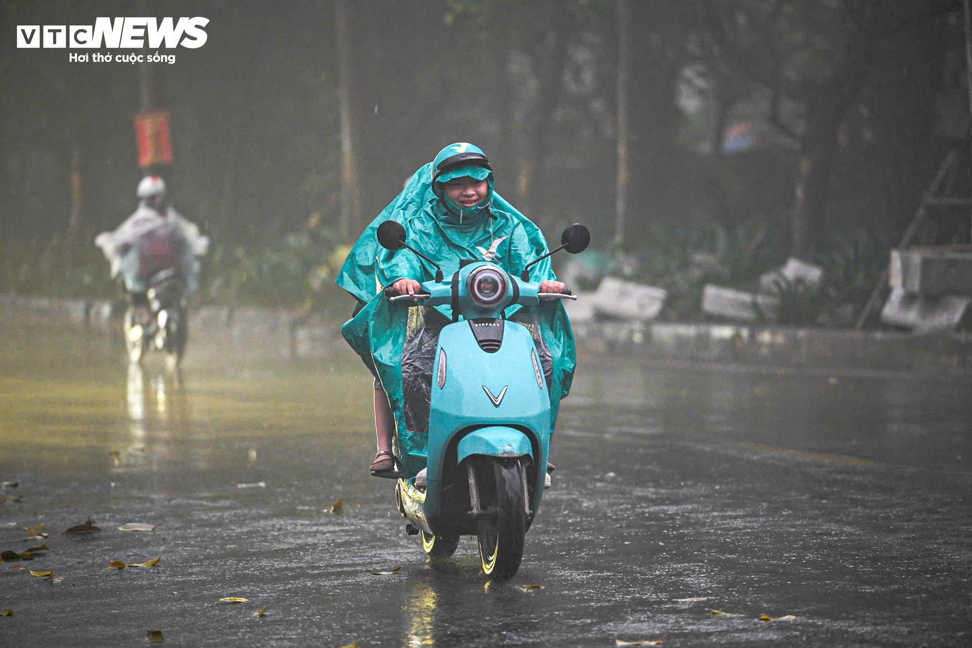 Trời chuyển rét kèm mưa vừa, có lúc mưa to khiến tầm nhìn giảm, người dân di chuyển khó khăn sáng 13/12.