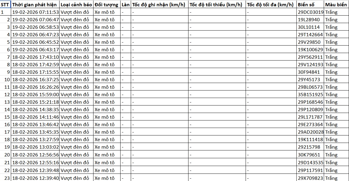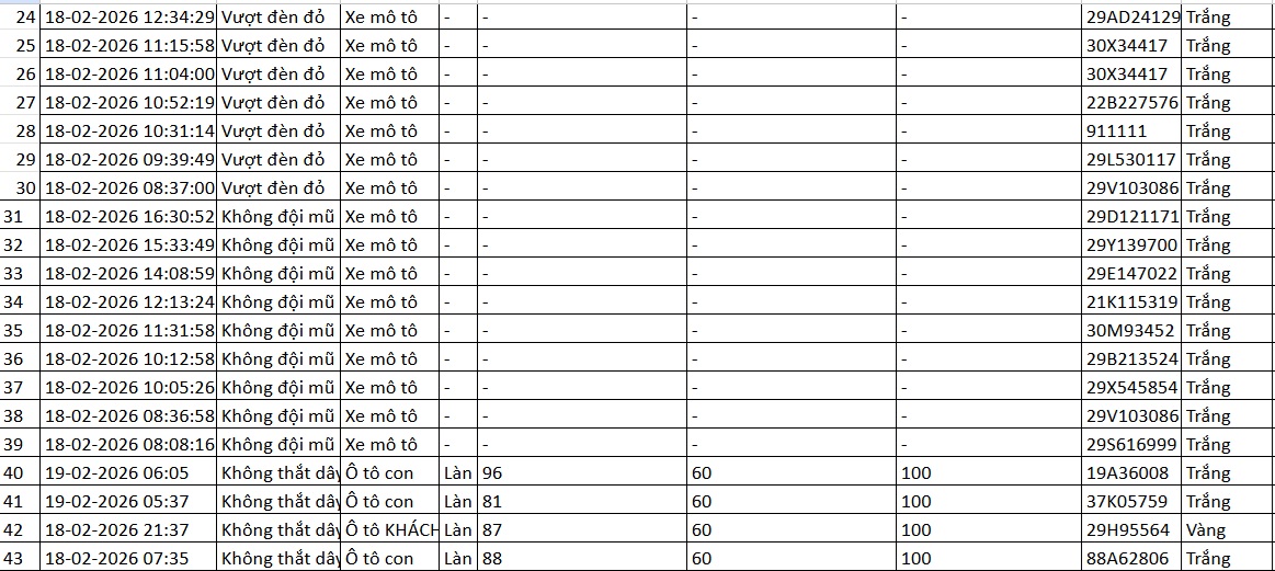 Theo thông tin từ Cục CSGT, từ 12h ngày 18/1đến 12h ngày 19/1, camera AI trên tuyến cao tốc Nội Bài -Lào Cai và phố Phạm Văn Bạc, Hà Nội tiếp tục ghi nhận nhiều trường hợp vi phạm.