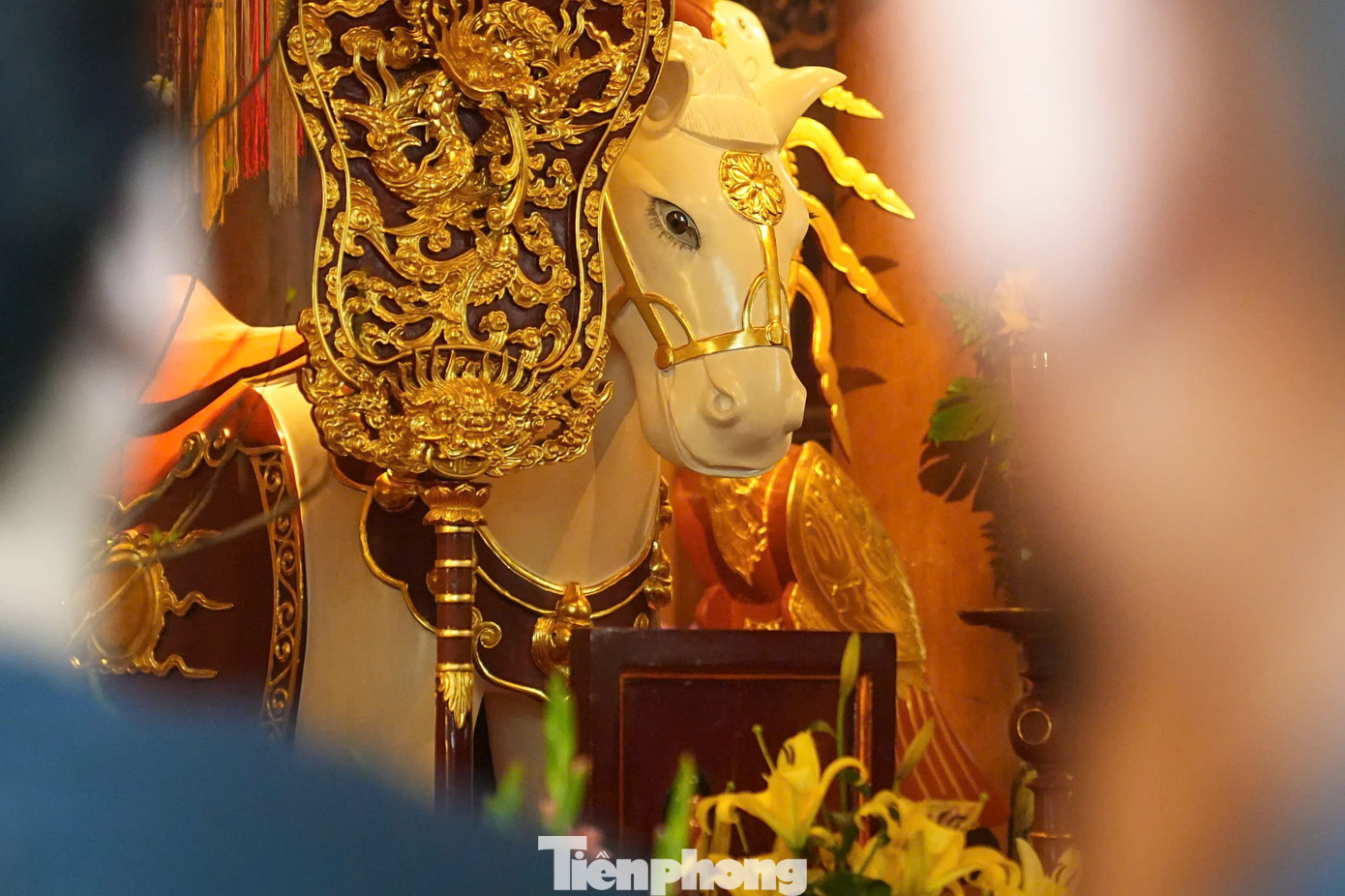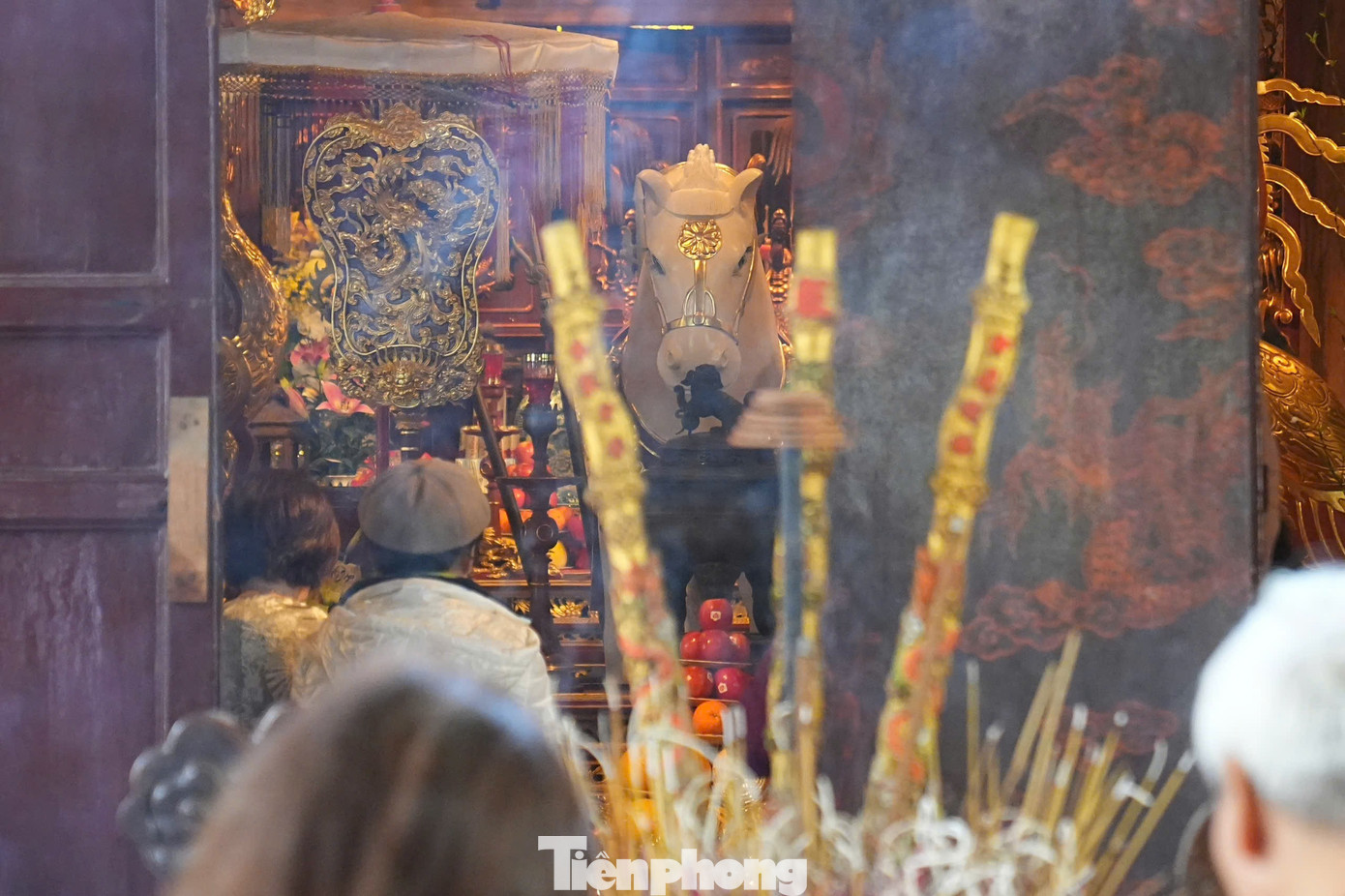 Bên trong đền, khu vực thờ Bạch Mã đại vương được trang hoàng trang trọng, khói hương nghi ngút. Dù lượng khách đông, không khí vẫn giữ được nét trầm mặc, linh thiêng vốn có.