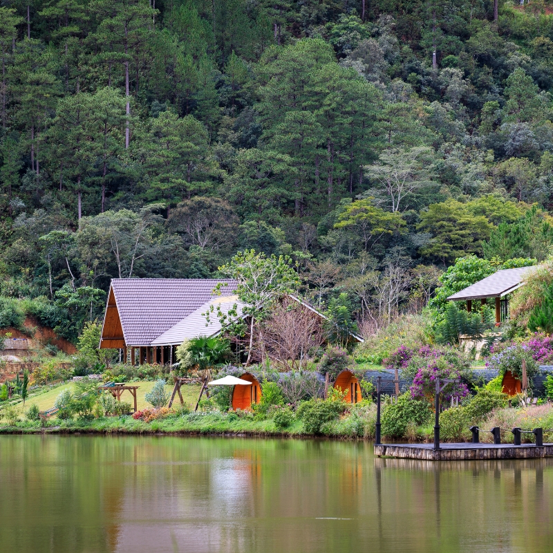 Lat Valley Village là khu nghỉ dưỡng cách trung tâm thành phố Đà Lạt khoảng 40 phút đi xe, được xây dựng theo kiến trúc Châu Âu có những villa biệt lập giúp khách lưu trú tận hưởng trọn vẹn sự yên tĩnh của núi rừng. Theo trang chính thức của Lat Valley Village, khu nghỉ dưỡng này có các hạng phòng gồm: nhà vàng nhỏ, nhà vàng lớn và villa, tổng cộng có 15 căn.