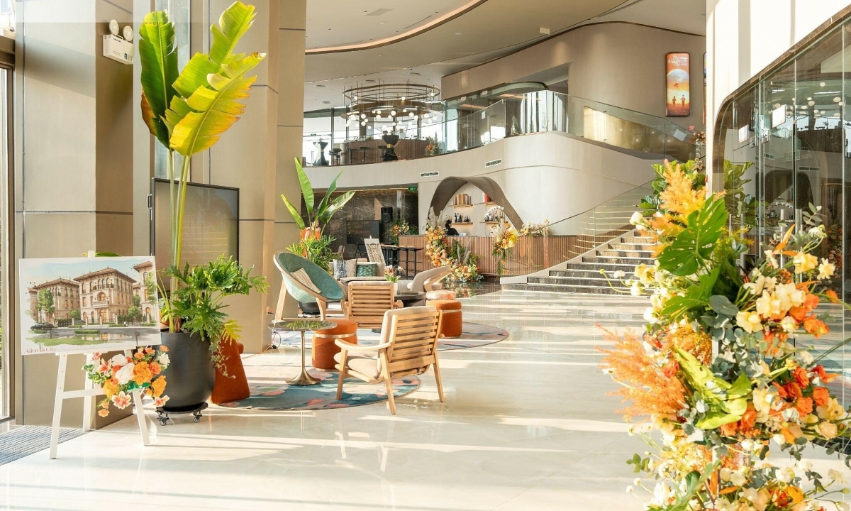 Hiện mặt tiền công trình thu hút sự chú ý với tấm hoarding board (rào chắn công trình) nghệ thuật do Hermès hợp tác cùng nghệ sĩ Việt Nam Tuýp Trần thực hiện. Tác phẩm kết hợp các biểu tượng quen thuộc của Hermès với những chi tiết gợi nhắc đến văn hóa Hà Nội như ban công gốm, chậu cây hay hình ảnh lấy cảm hứng từ truyền thuyết trả gươm.