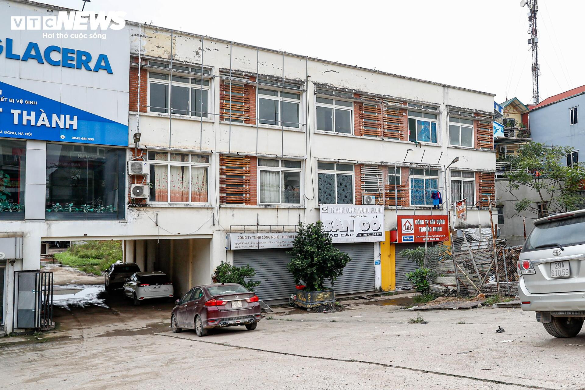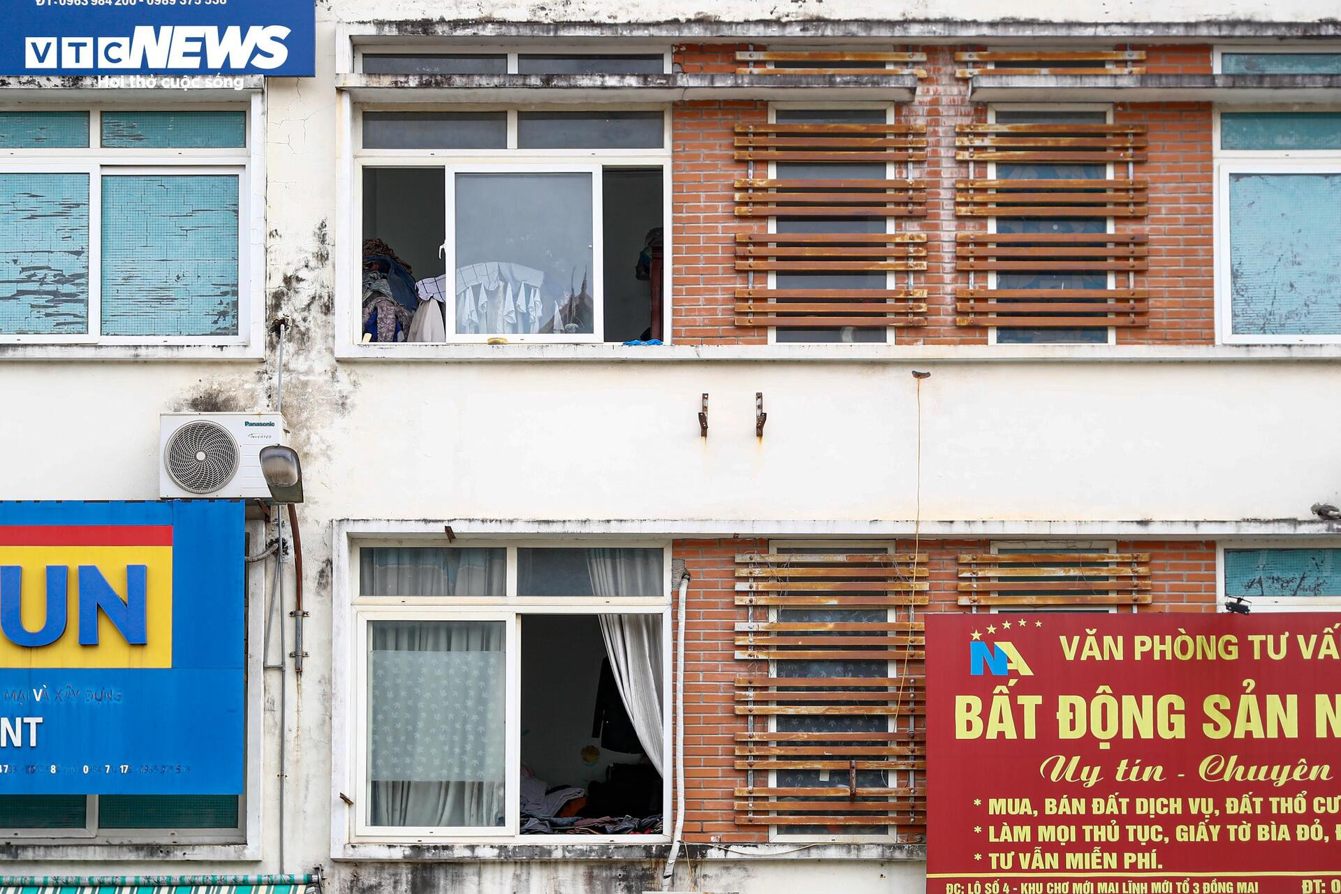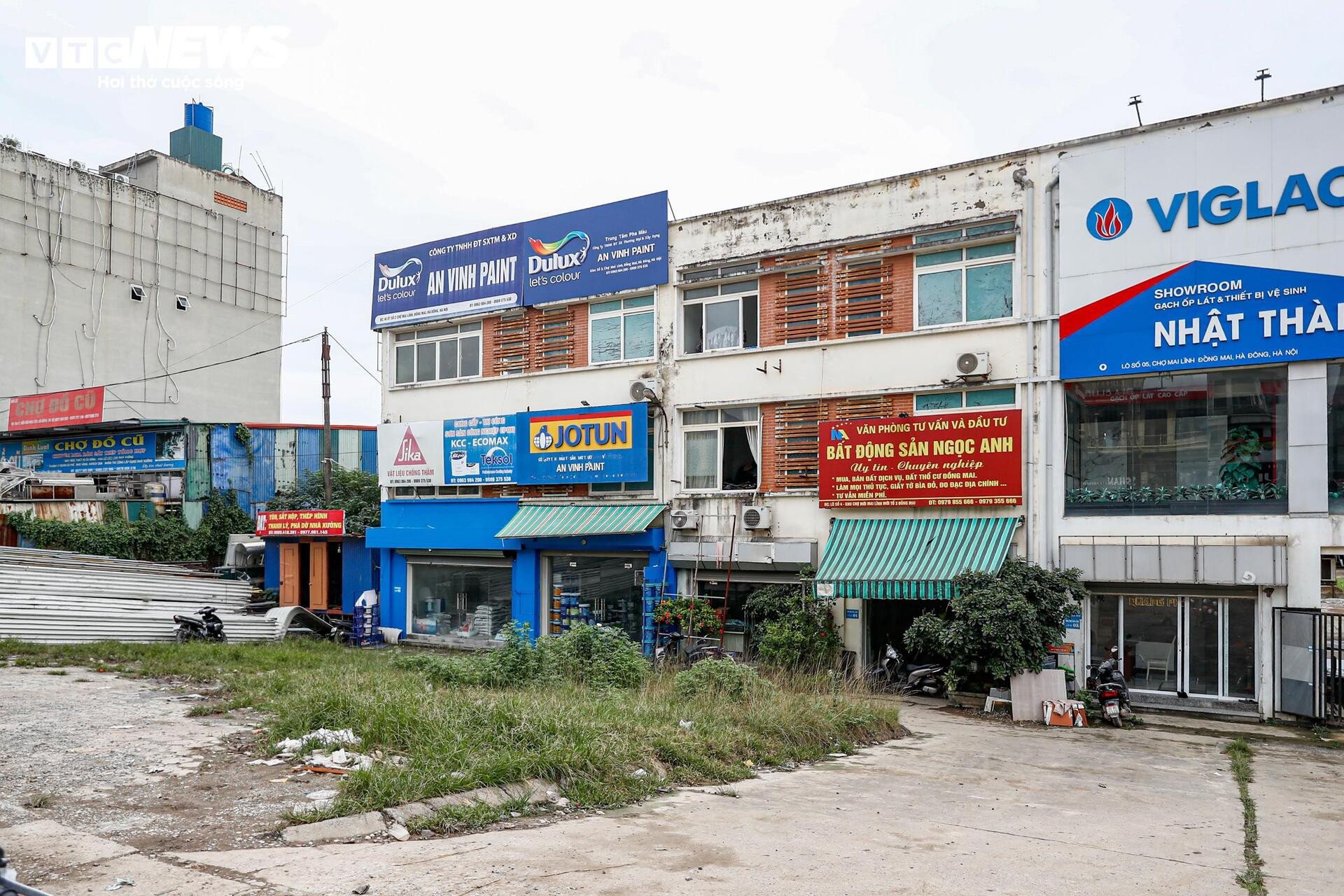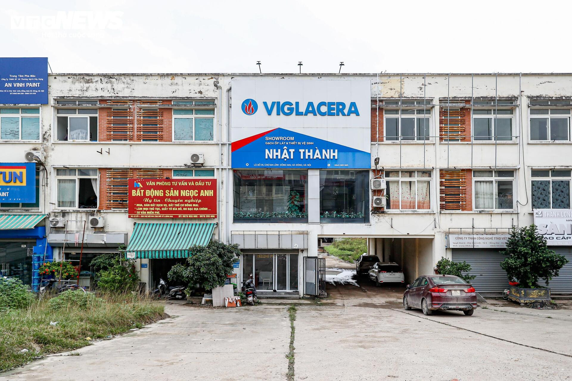 Bên ngoài mặt tiền chợ, một số ki-ốt đang bị sử dụng sai mục đích, trở thành văn phòng bất động sản hoặc cửa hàng vật liệu xây dựng.
